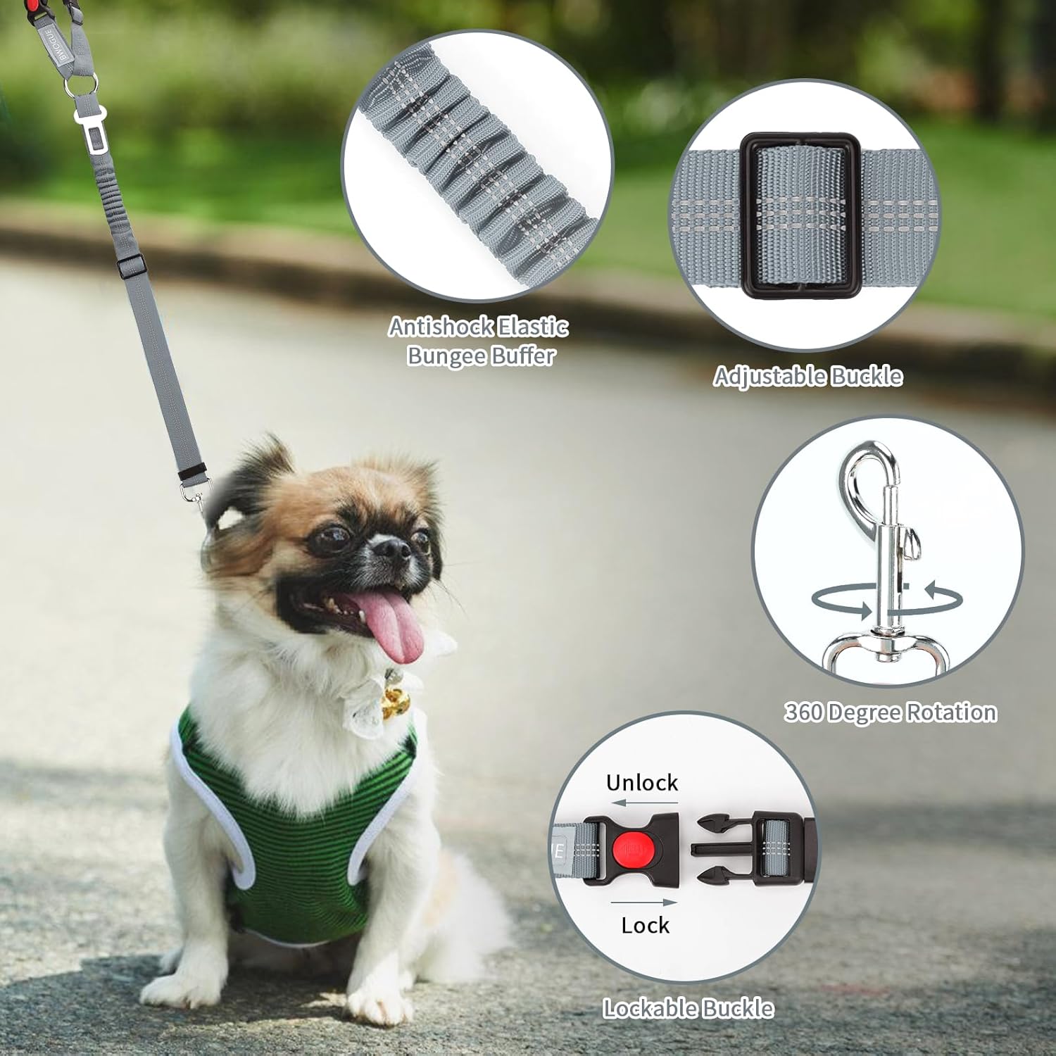 - Durable&Practical: Made of durable nylon fabric to ensure safety, features the solid zinc alloy swivel snap,elastic bungee and high-quality buckles, The reflective stitching design makes it great for night time use. The elastic bungee helps dog prevent jerking with sudden movement. the pet car seat belt ensures the safest traveling for your pet, and provides a most relaxing driving experience for you