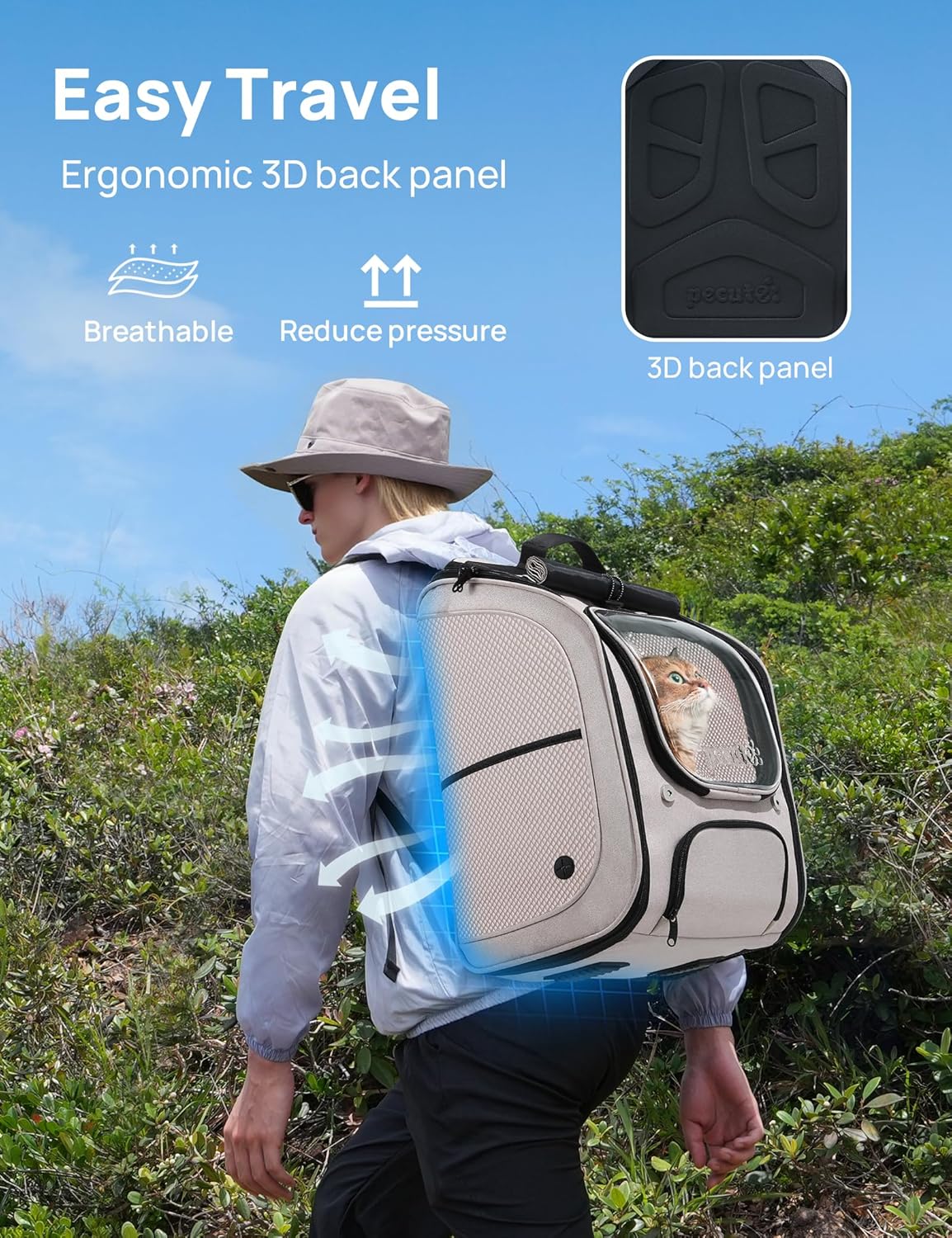 - Comfortable Carrying Experience: There is no pulling feeling when carrying the cat, and you donβt need to bend down when carrying it. The one-piece 3D printed back panel fits the back and improves the breathability of the back. A good cat backpack not only serves pets, but also serves pet owners.