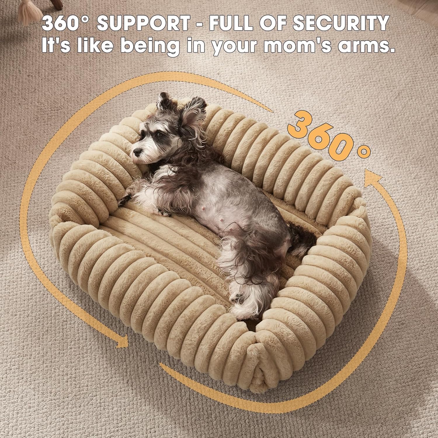 - NECK SUPPORT PILLOW FOR DEEPER DOG SLEEPING: The raised sides of dog beds for small dogs provide a cozy nook for your petβs head and neck, promoting peaceful sleep. Designed with 360Β° support, full of security, this orthopedic dog bed creates a secure, enclosed space, perfect for dogs who love to curl up or lean against something. The small dog bed's 2:1 mix of chopped foam and polyester fiber offers perfect support and fluffy comfort for pets.