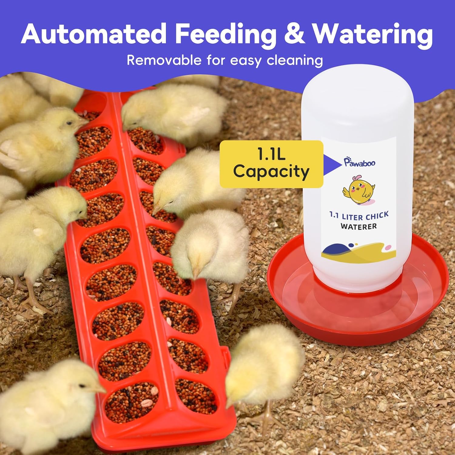 Pawaboo 5-in-1 Chicken Brooder Box for Chick Starter Kit, Includes Pet Cage Tent, Chicks Perch, Chicks Feeder, 1.1L Chick Waterer, Baby Chicken Supplies (Brooder Set), Red+Black