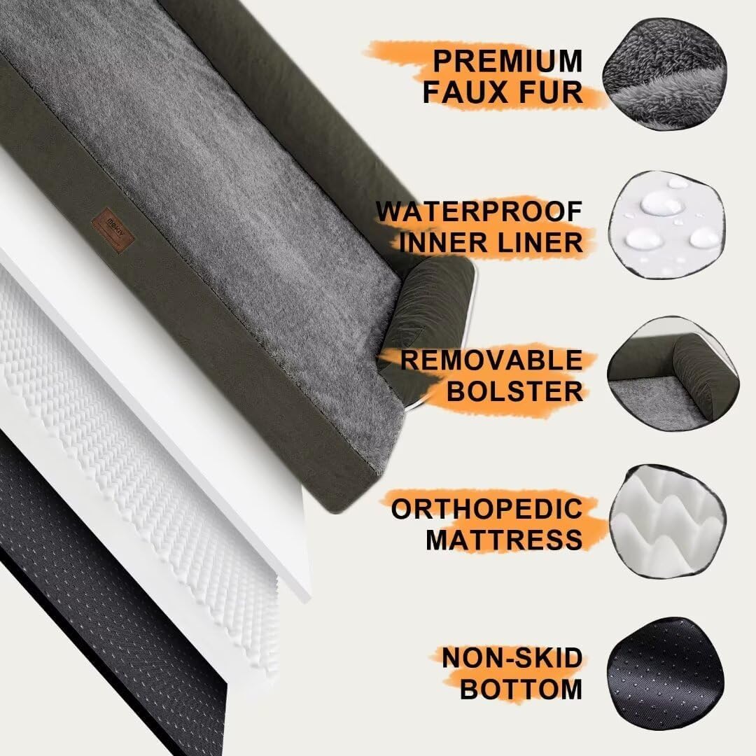 - Orthopedic Support: Mekiy orthopedic dog bed 3.5 inches bolster design can effectively soothes the pet's muscles; offering your pet a variety of cozy positions to snuggle; The cushioned bolster shape is fully filled to support your petβs head and neck for a more restful sleep