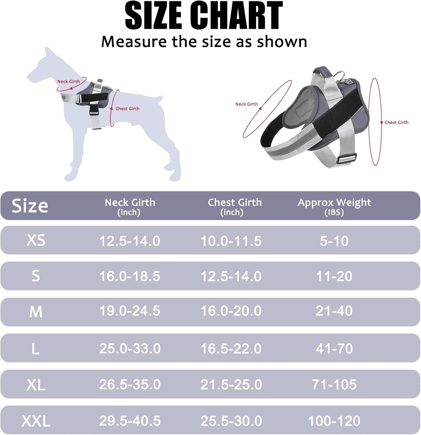 - EXTRA SMALL DOG HARNESS: ★Approx Weight: 5-10 lbs. Neck Girth: 10"-11.5", Chest Girth: 12.5"-29"★. It perfect for extra small dogs and pups, like Yorkie, Chihuahua, Pug, Maltese dog, etc.