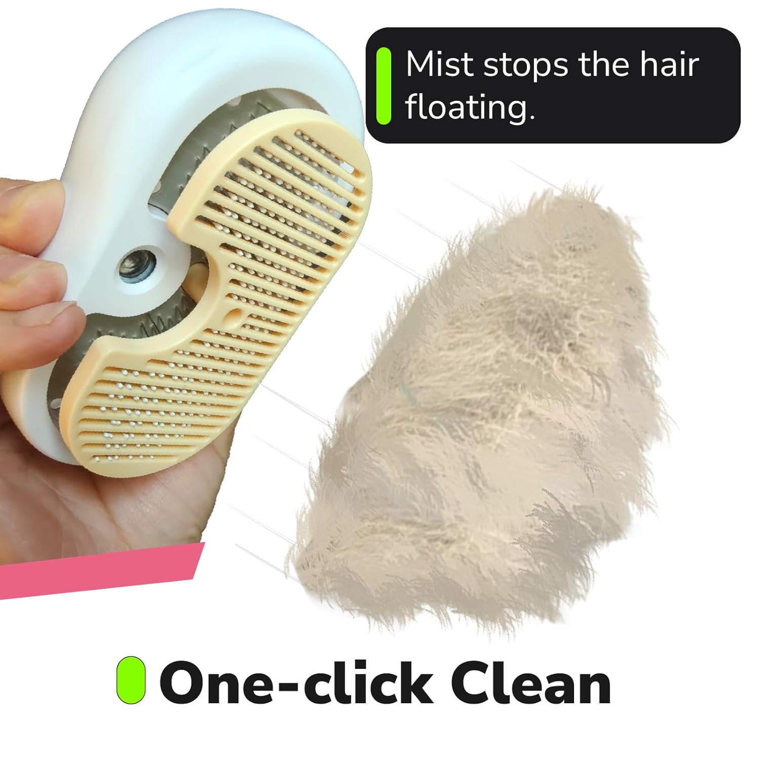Misty - Moisturizing Pet Comb - Hair Brush with Mist, One-Click Clean, & Stainless Steel Bristles - Anti-Static Deshedding - Smooth Grooming for Cats, Dogs, & Small Pets - No Handle Compact Design