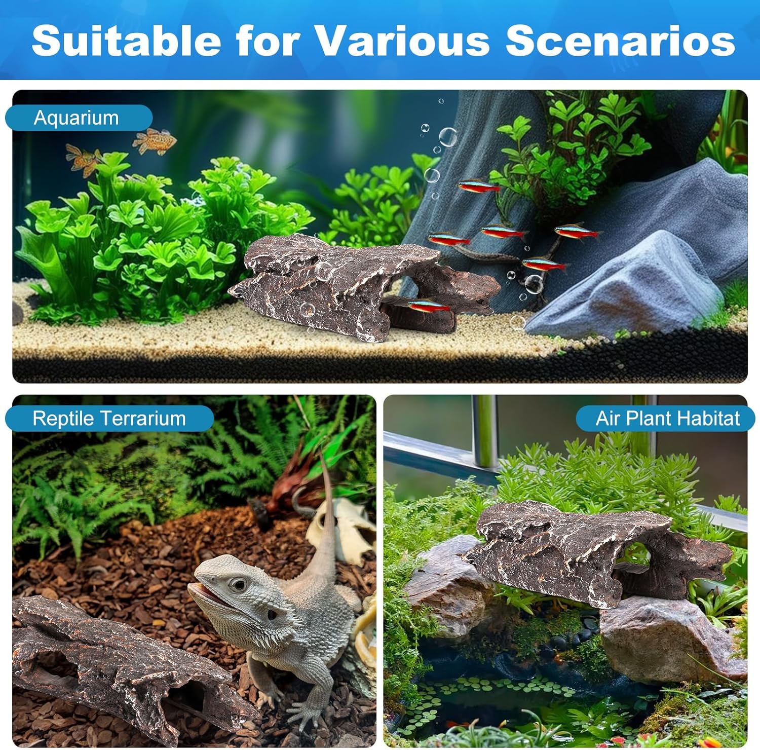 - Natural Aquarium Cave Design: Crafted from high-quality resin, this hollow tree trunk provides essential hiding spots for fish to rest and explore. The realistic bark texture creates authentic shelter spaces. Perfect for betta fish and small reptiles.