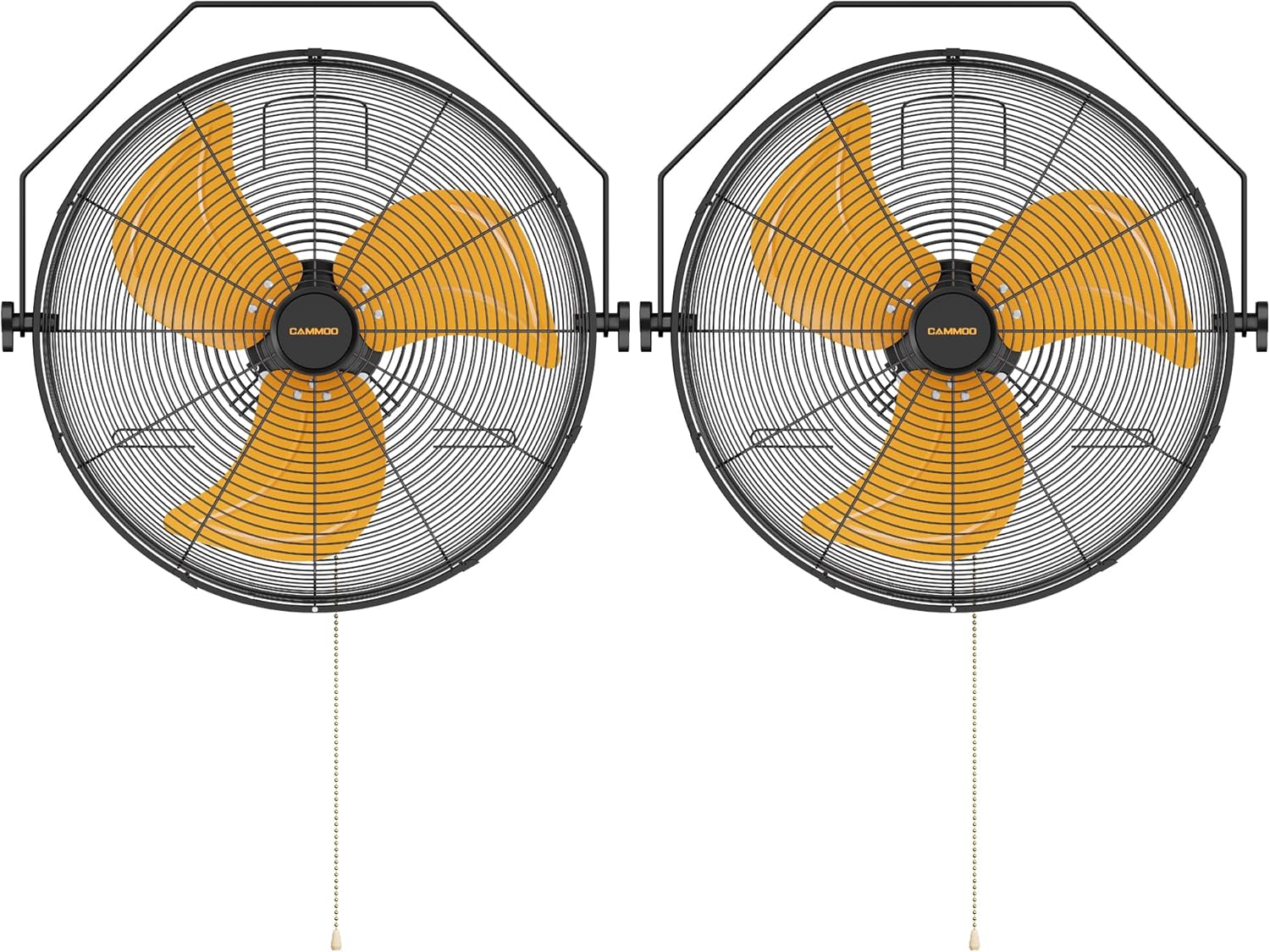 18 Inch Wall Mount Fan, Extended 6.6ft Power Cord, 360° Tilt Adjustment, 3-Speed, IP44 Industrial Commercial Wall Mounted Fan for Greenhouse, Garage, Workshop, Covered Patio, 2 Packs