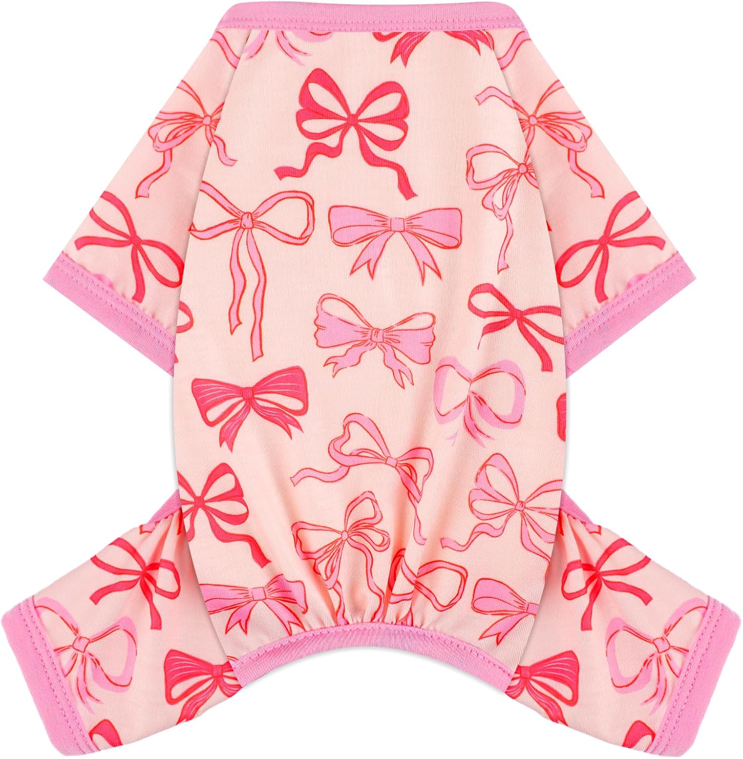 Dog Pajamas Small Sized Dogs Stretchable Summer Dog Clothes Pjs 4 Legs Girl Boy Cute Soft Puppy Outfits Doggie Cat Jammies Jumpsuit Sleeper for Pet (Bow Tie, X-Small)