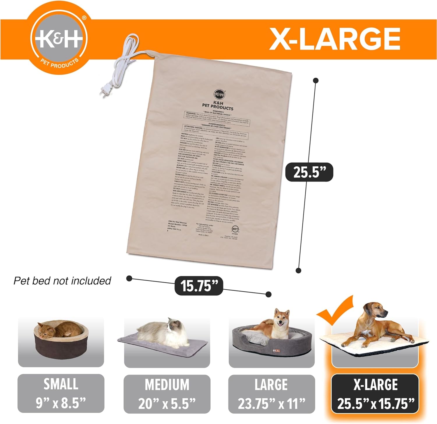 - SIZE & ENERGY-EFFICIENT: K&H X-Large Pet Bed Warmer measures 25Β½" x 15ΒΎ", making it perfect for extra-Large pet beds, and it uses only 22 watts of power, ensuring low energy consumption while providing cozy warmth for your pet