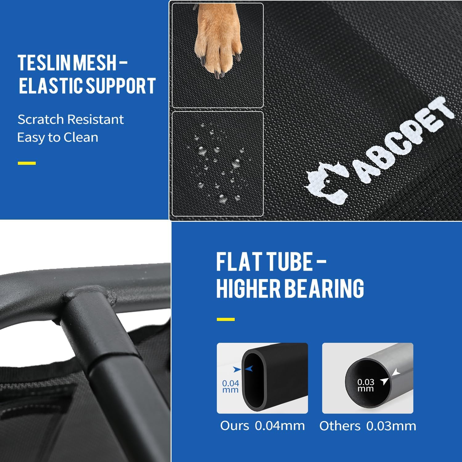 Cooling Elevated Dog Bed, Raised Outdoor Dog Bed Waterproof Pet Beds Cots Stable and Easy Assembly, Teslin Fabric with 1.2mm Thick Iron Frame, Breathable, Ultra-Sturdy,Black, 42 * 28 * 7.9