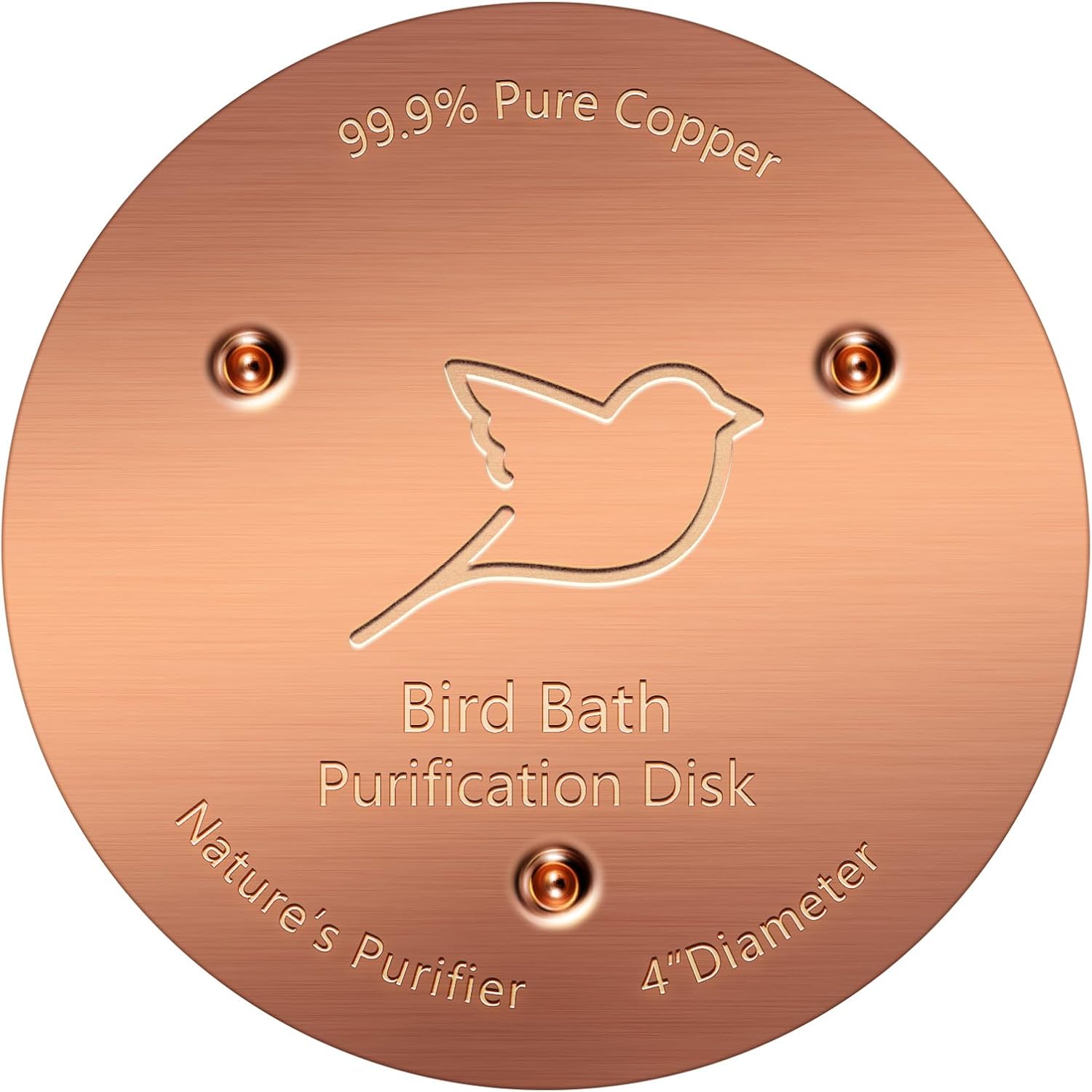 - Optimal water purification: Designed to keep your birdbath water fresh and clean, the copper disk efficiently purifies water by naturally eliminating debris, such as droppings and leaves, reducing the need for frequent cleaning and ensuring your feathered friends have a safe drinking and bathing environment