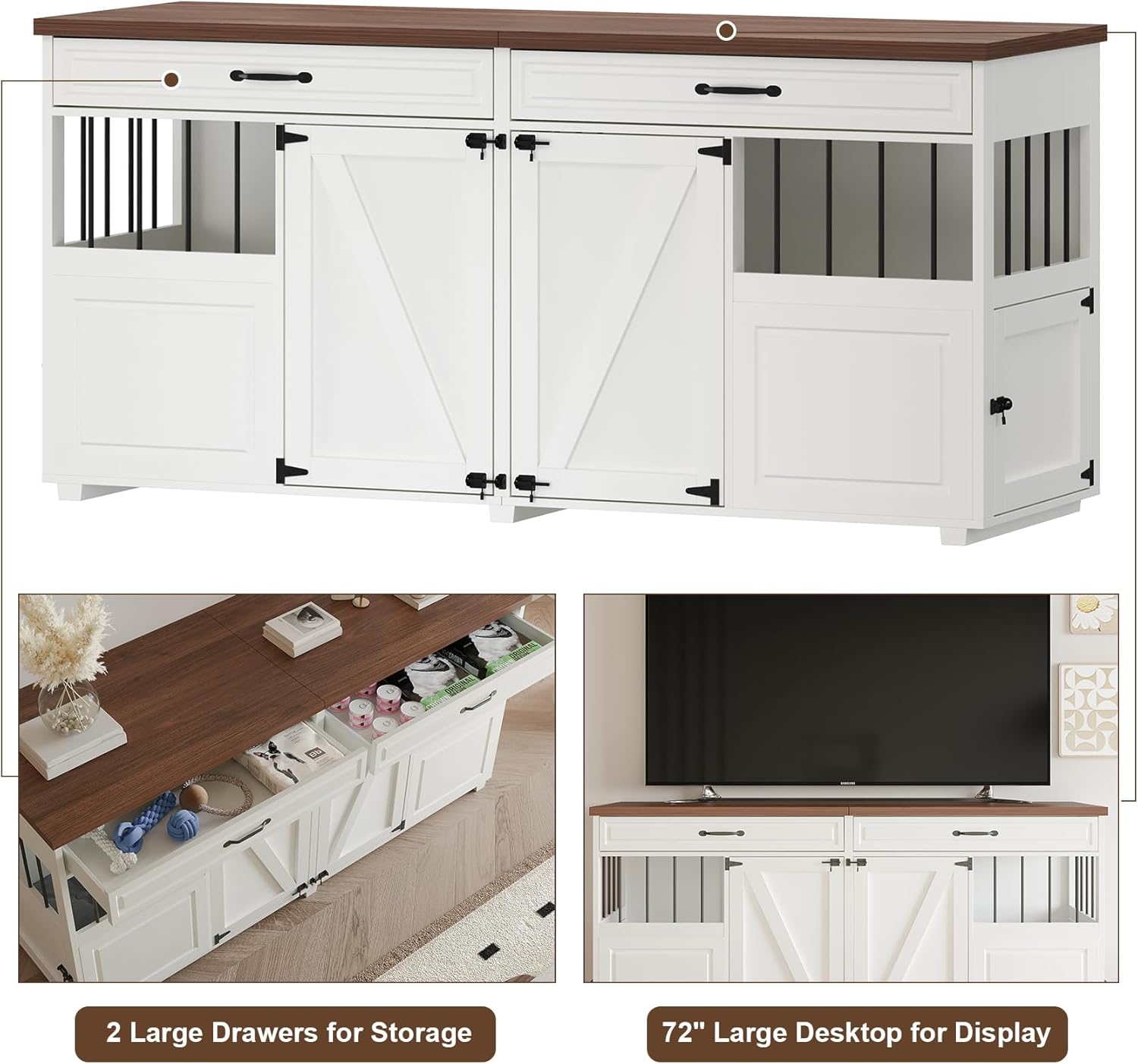 - MULTI-PURPOSE DOG CRATE FURNITURE β Designed as stylish home decor, this dog crate doubles as a 72"x 23.6" tabletop that holds up to 70 lbs. Beyond housing your pet, it effortlessly functions as a TV stand, display shelf, or plant standβseamlessly blending pet care with modern living. Its versatile design creates the perfect balance of function and aesthetics for your home.