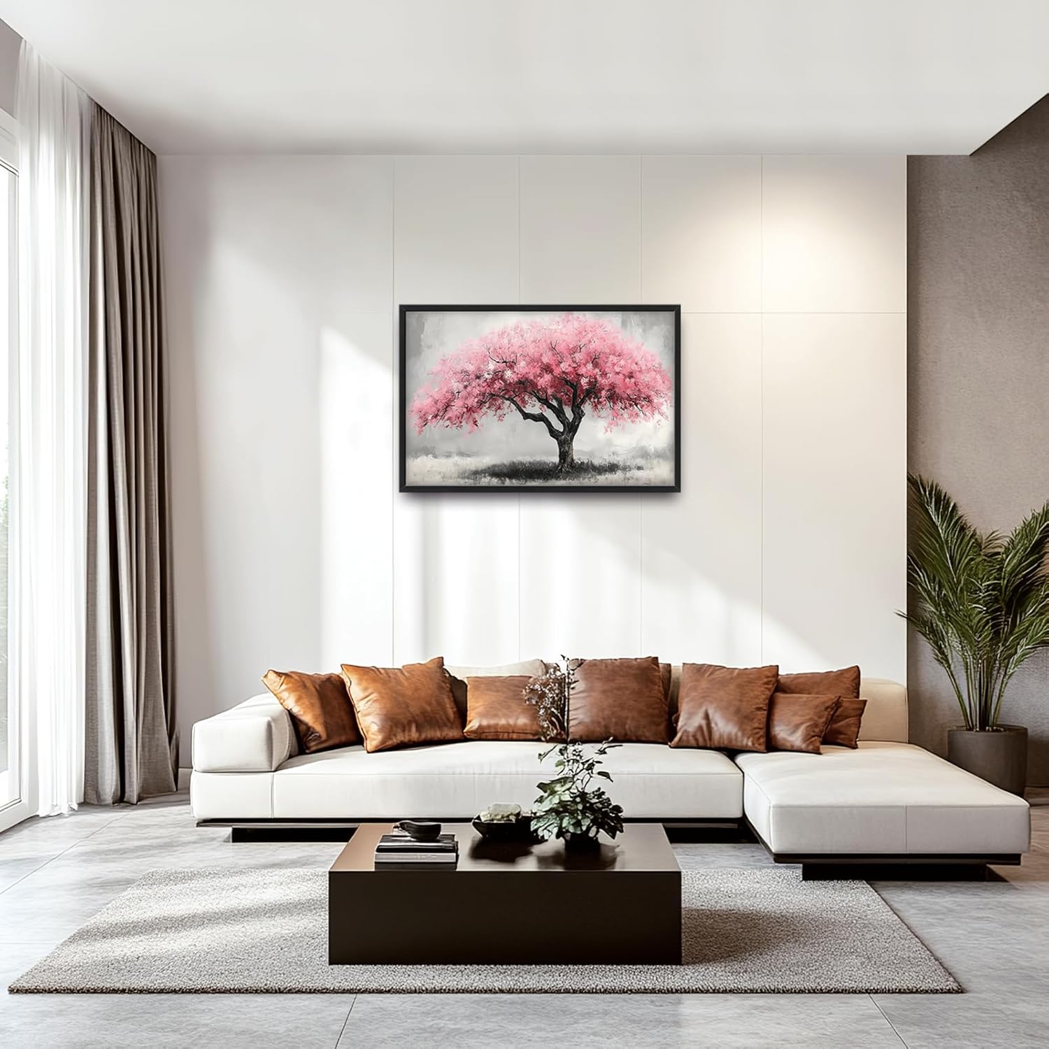 Extra Large Framed Pink Tree Wall Art,Abstract Tree of Life Wall Decor,Pink and Grey Pictures for Living Room,Canvas Print Painting Modern Artwork Bedroom Office Bathroom Home Decor 36L x24W
