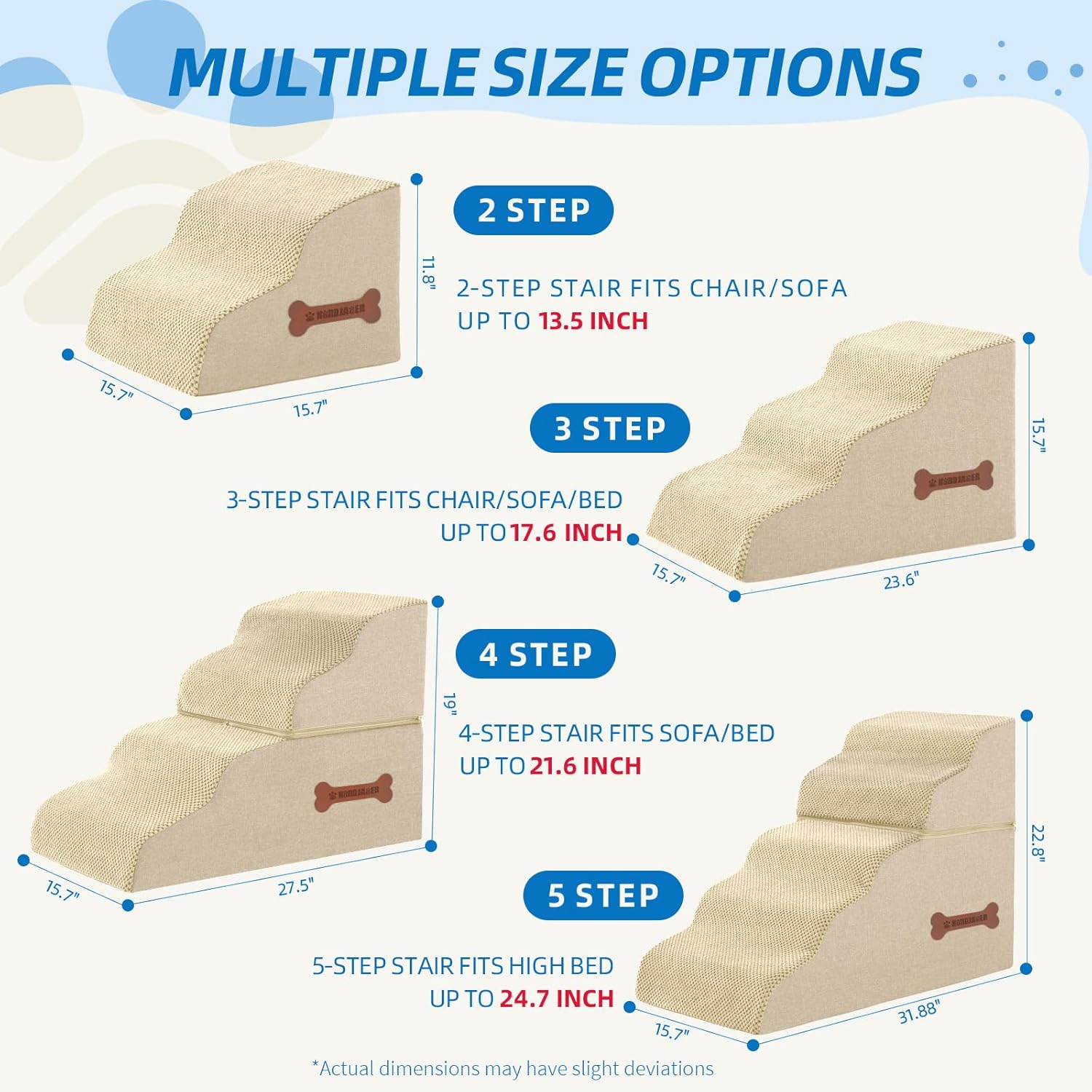 Dog Stairs 3-Step for Small Dogs and Cats to Get on Bed and Furniture/Windows, Pets Can Climb, Sit, or Perch to Look Out Windows, Extra Wide Dog Steps, Non-Slip Waterproof Fabric Cover, Beige(15.7" H)