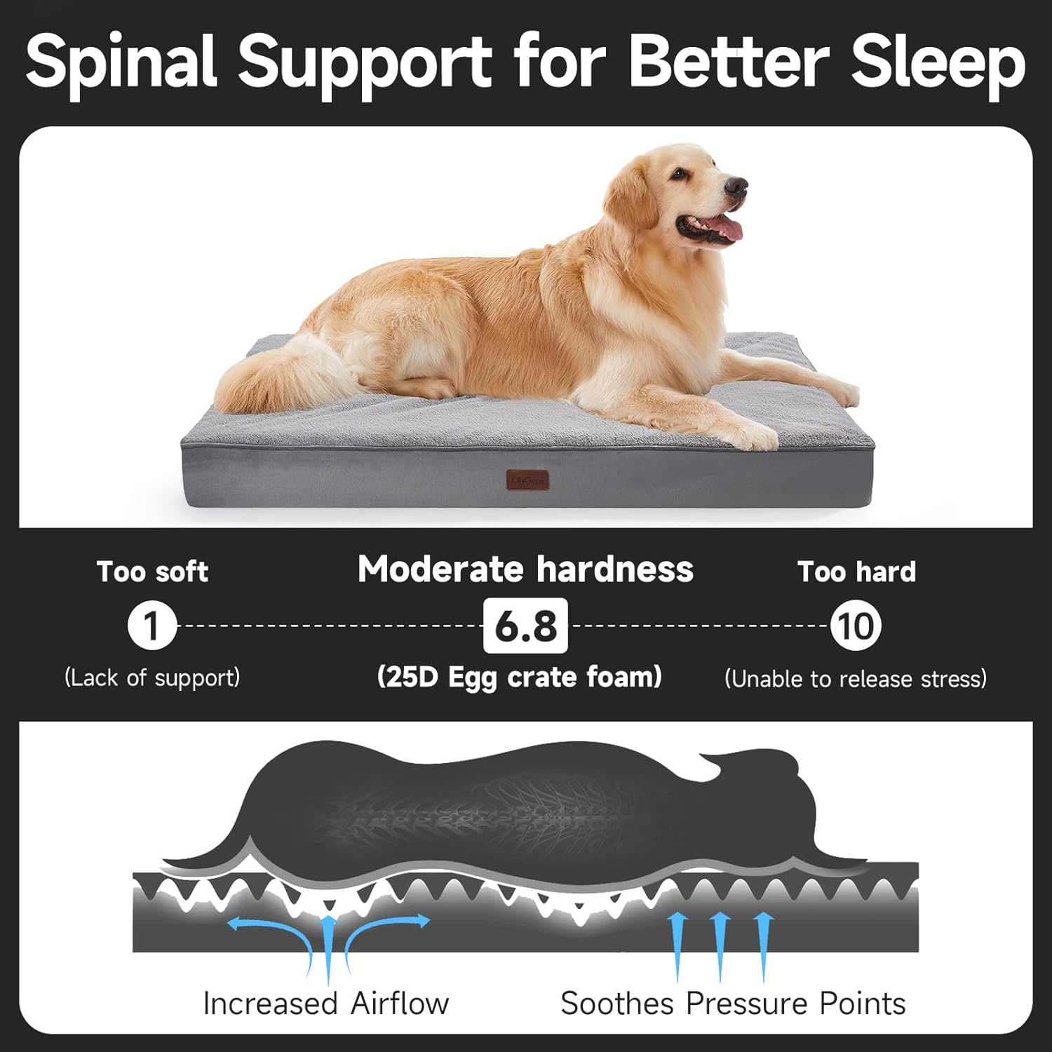 OhGeni Orthopedic Waterproof & Machine Washable Dog Bed for Large Pets, Suitable for Crates, 25D Egg Crate Foam, Non-Slip Bottom & Removable Cover, Sherpa Fabric, 41 Inches(Gray)