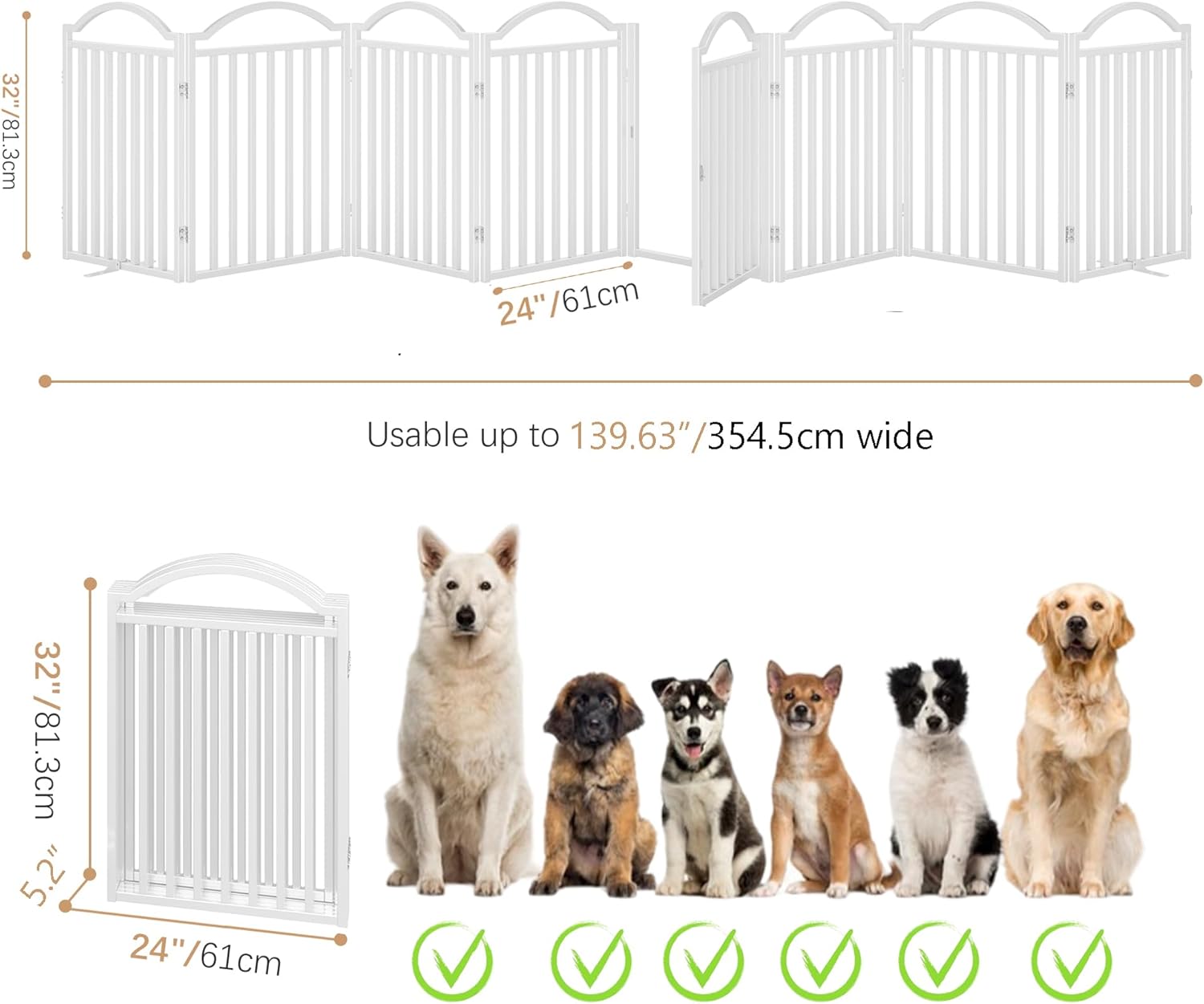 - 【FREESTANDING DOG GATE SIZE】Dog fence overall dimensions 96"L x 0.8"W x 32"H; Folding size 24"L x 3.2"W x 32"H.