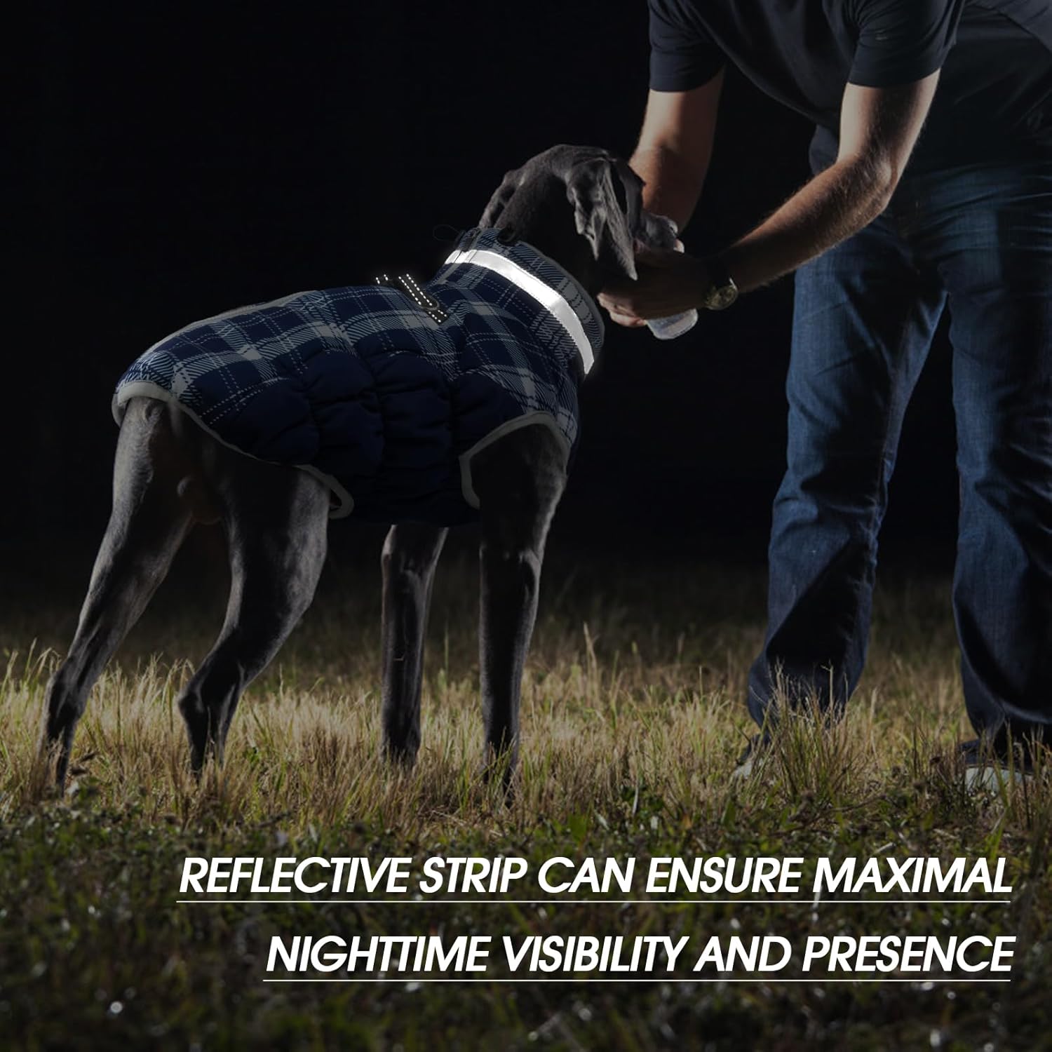 FUAMEY Dog Coat for Large Dogs,Waterproof Dog Winter Jacket with Harness Built in Puppy Cold Weather Coats Reflective Pet Vest with Zipper Warm Fleece Dogs Snowsuit Windproof Blue Plaid XL