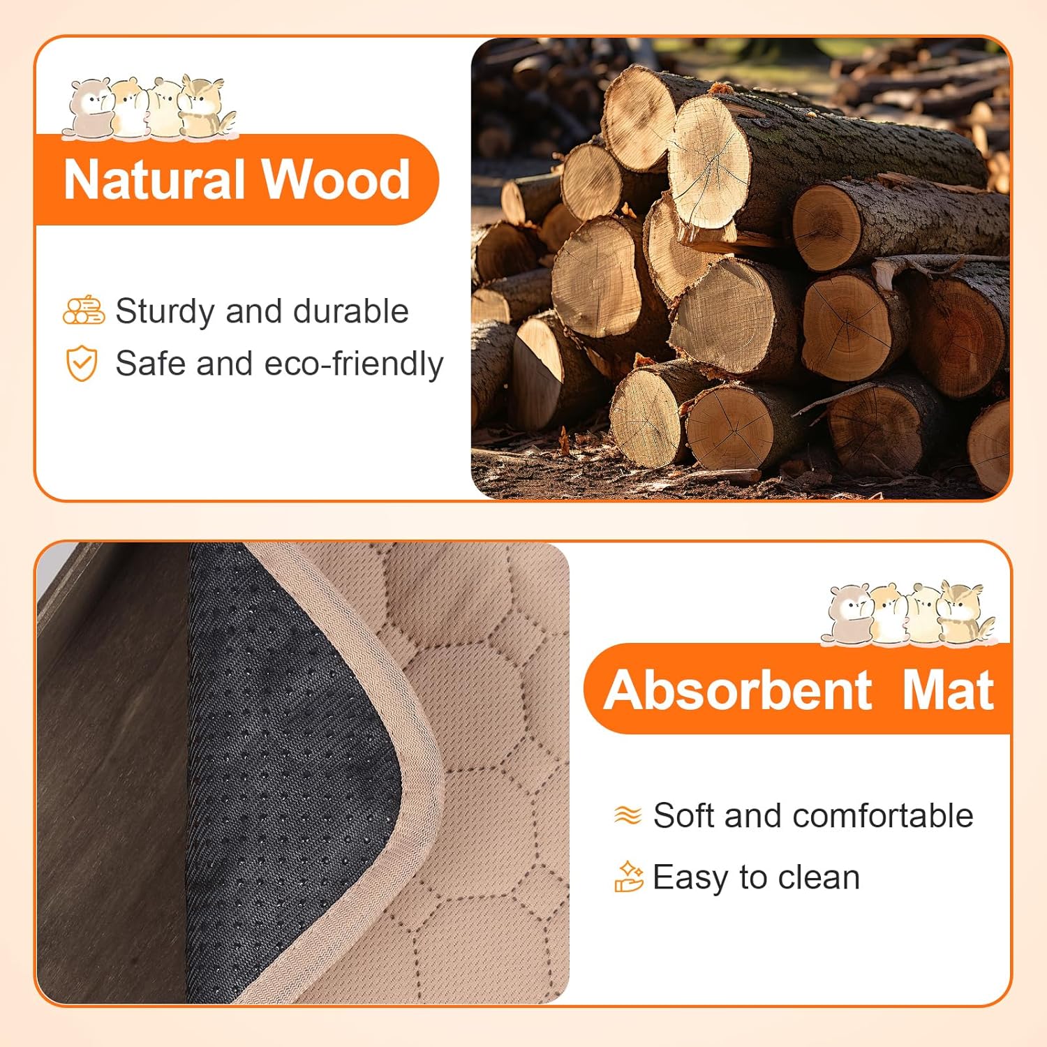 - 🐰【Absorbent Fleece Liners】This large guinea pig hideout is also equipped with a super-absorbent urine pad which protects the cage or floor from animal urine and droppings. The urine pad can be used repeatedly and is made using a comfortable and soft fabric.