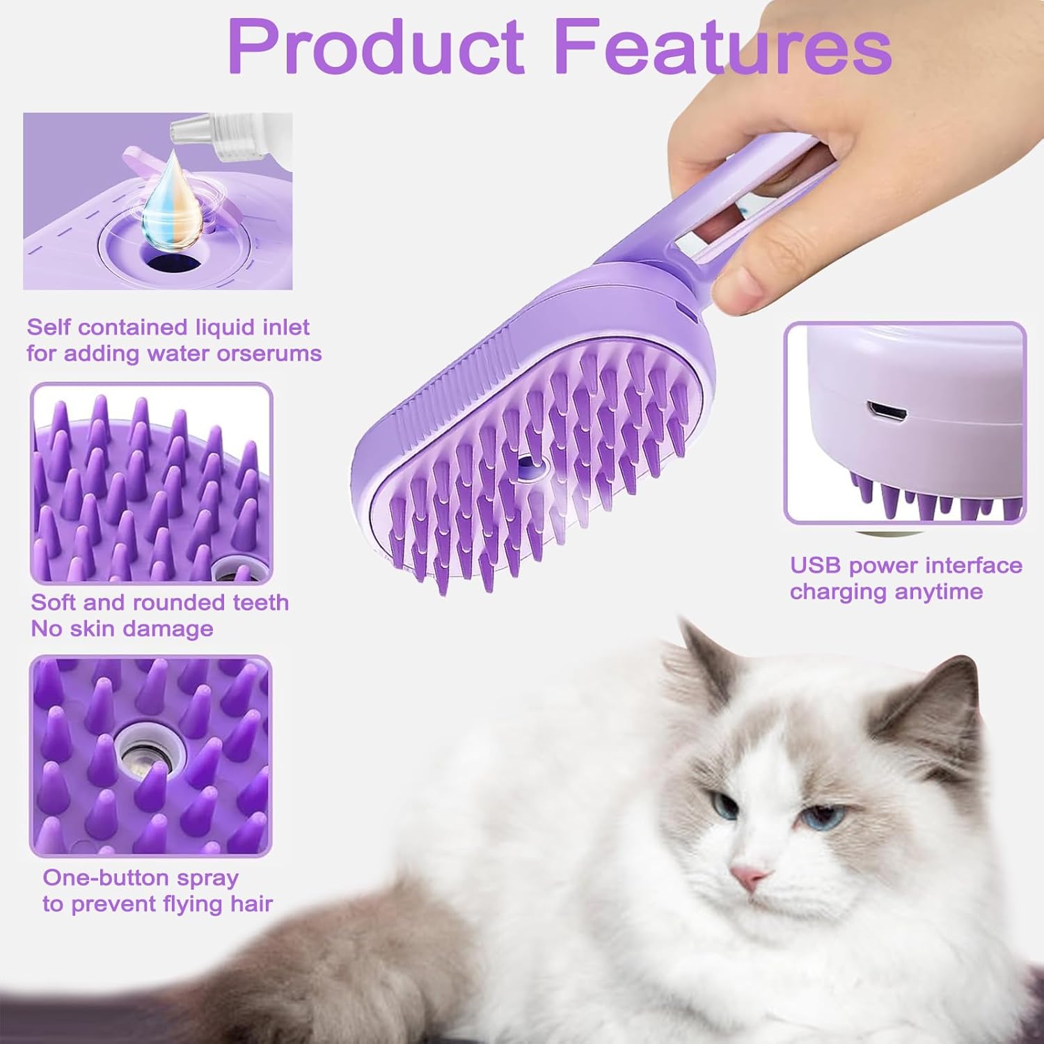 - 【4 in 1 Pet Steam Brush】Our innovative 4-in-1 cat steam brush is not only a tool, but also a thoughtful gift for cats! It can easily remove waste hair, clean dust and dirt at the same time, and the soft silicone brush head can also provide a soothing massage for cats, allowing cats to say goodbye to hair troubles while enjoying it