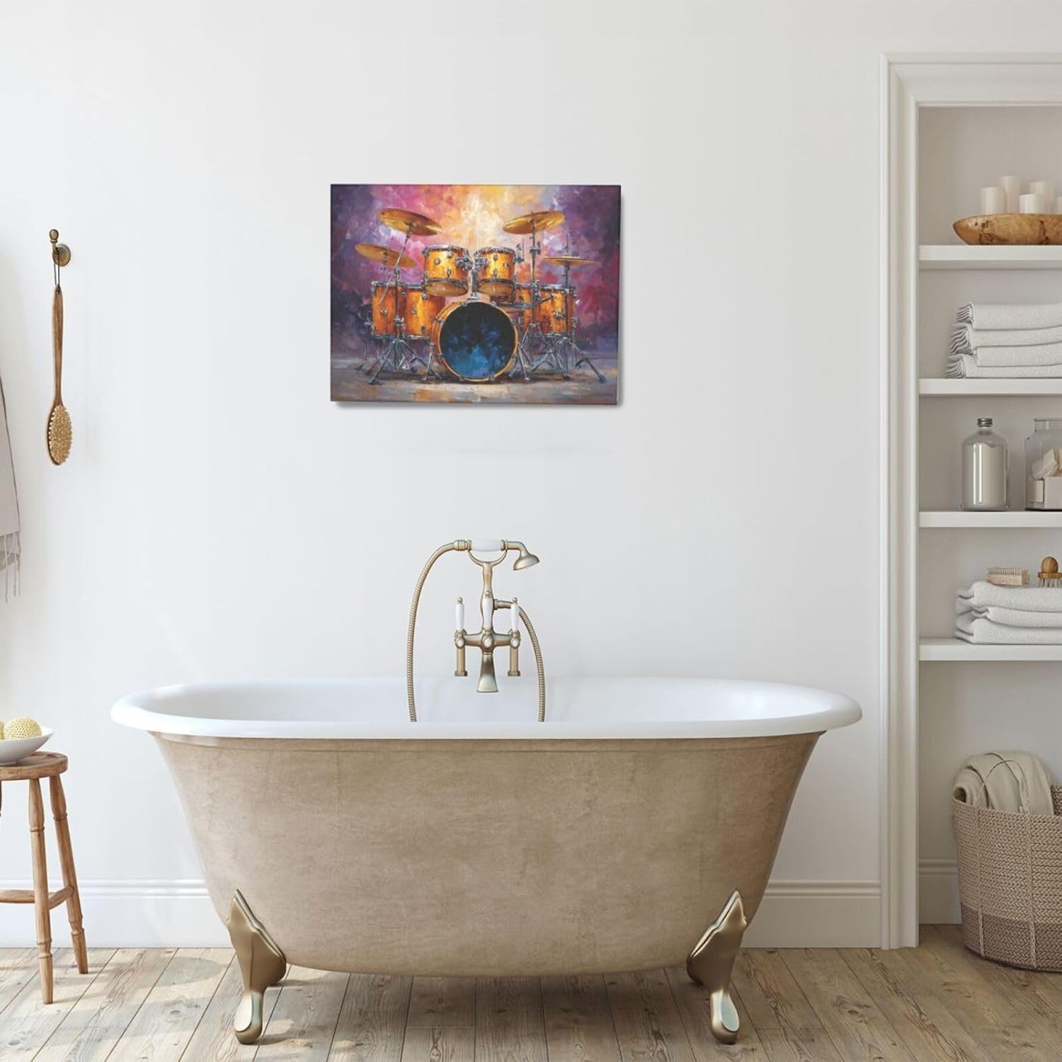 Music Wall Art Graffiti Musical Instruments Canvas Wall Decor Drum Pictures Painting Print Artwork Framed Decorations Gifts for Drummers Music Lover Studio Bar Musician Home Bedroom Living Room 12"x16"