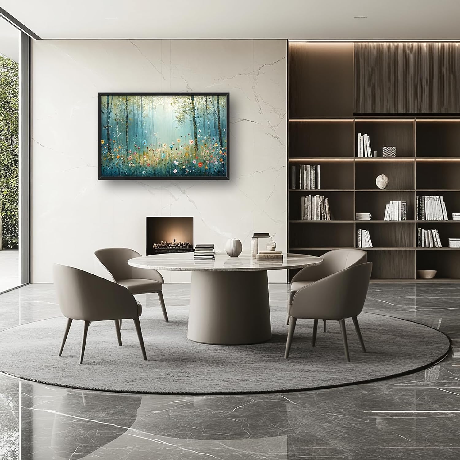 Large Forest Tree Wall Art for Living Room, Framed Oversized Wildflowers Wall Decor, Foggy Landscape Canvas Painting Modern Artwork Home Decoration for Dining Room Bedroom Office 36"x24"