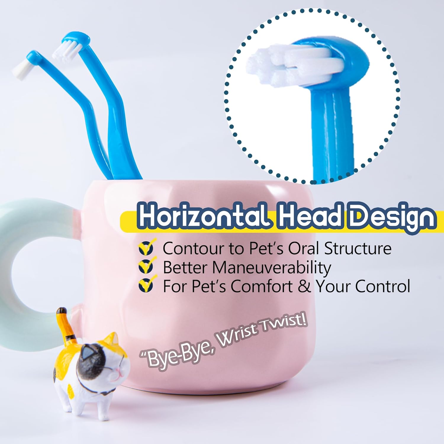 - Super Effective Teeth Cleaning Kit - the horizontal brush head is crafted from 0.12mm nylon bristles, perfect for pets who are seeking for toothbrushes with better cleaning power, it delivers a swift yet thorough clean, making oral care a breeze