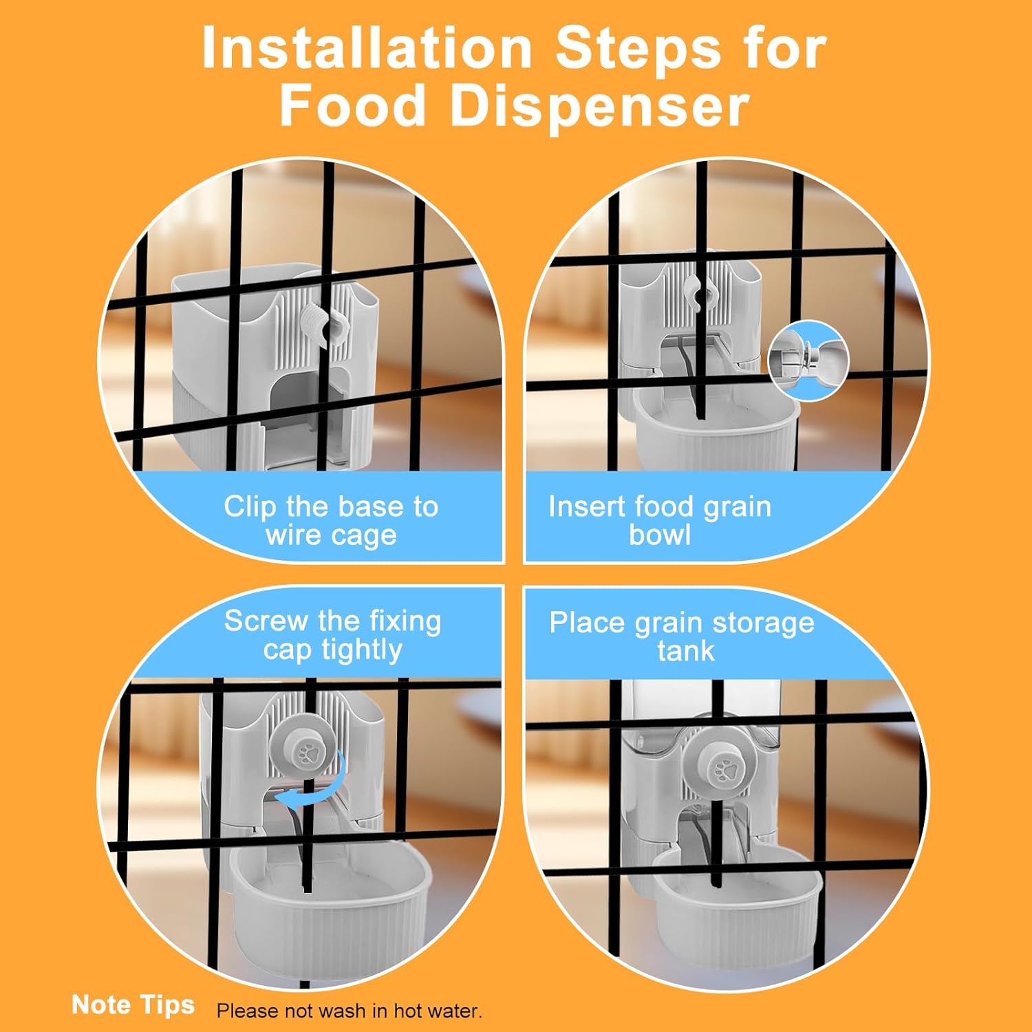 - Easy to Clean: Itβs made of plastic, all parts can be detachable to water wash. The removable food box is not only simplifies refilling, but also for daily clean. The transparent food box allows for easy checking the remaining grain.