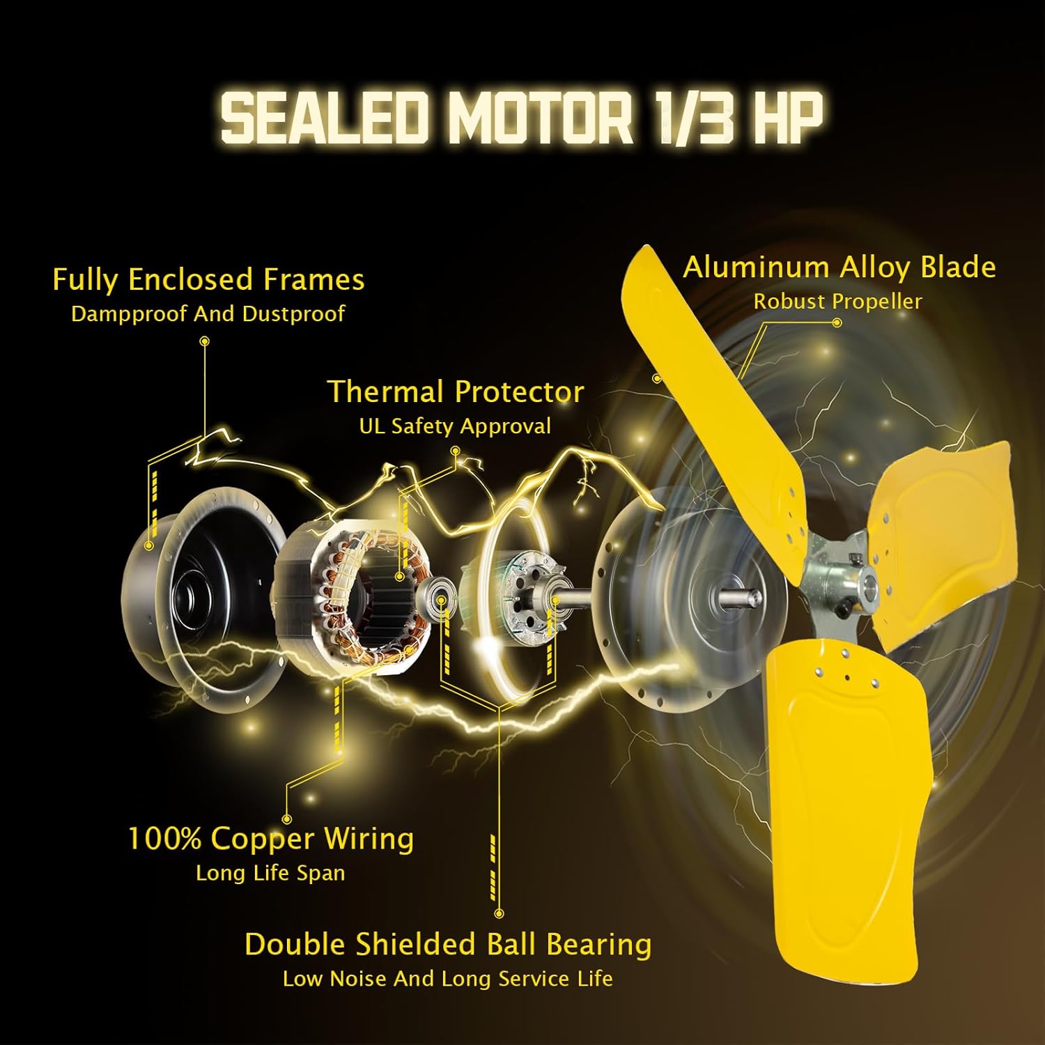 - γMoves Much Airγ: Built with 1/3HP Premium TEAO Enclosed Motor and Shielded Ball Bearings, this heavy duty industrial wall fan provides circulating breeze for large spaces, blowing distance reach 60 feet. It is ideal for Warehouse, Workshop, Factory, Garage, Basement, Greenhouse, Barn, Industrial, Commercial and Residential areas. High speed 9100 CFM / Low speed 7300 CFM