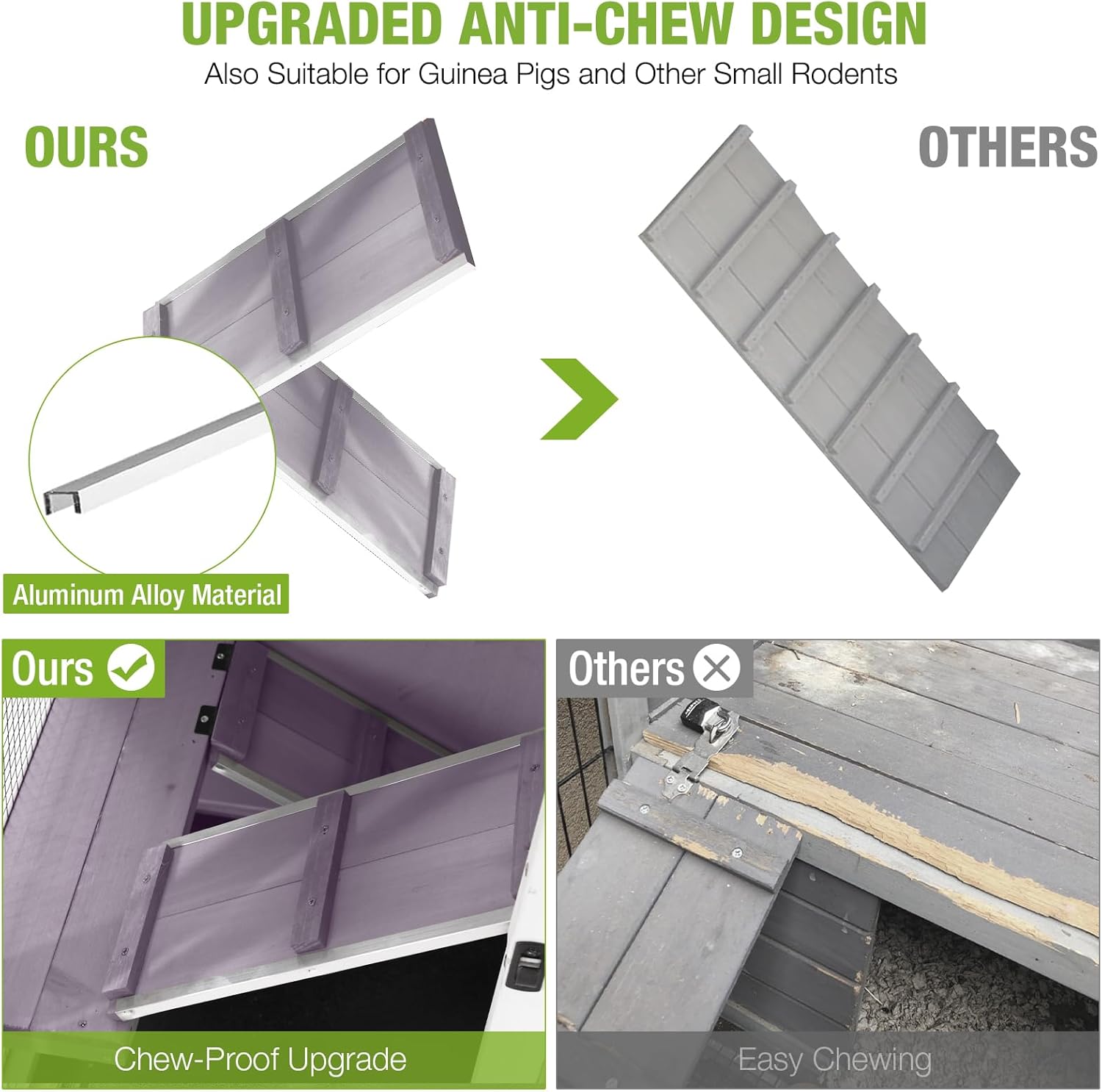 - Reinforced Chew-Resistant Design: The access ramp features aluminum alloy-reinforced edges to discourage chewing by rabbits and other small pets, enhancing the hutchβs long-term durability. This sturdy design protects against wear and tear, ensuring lasting use.