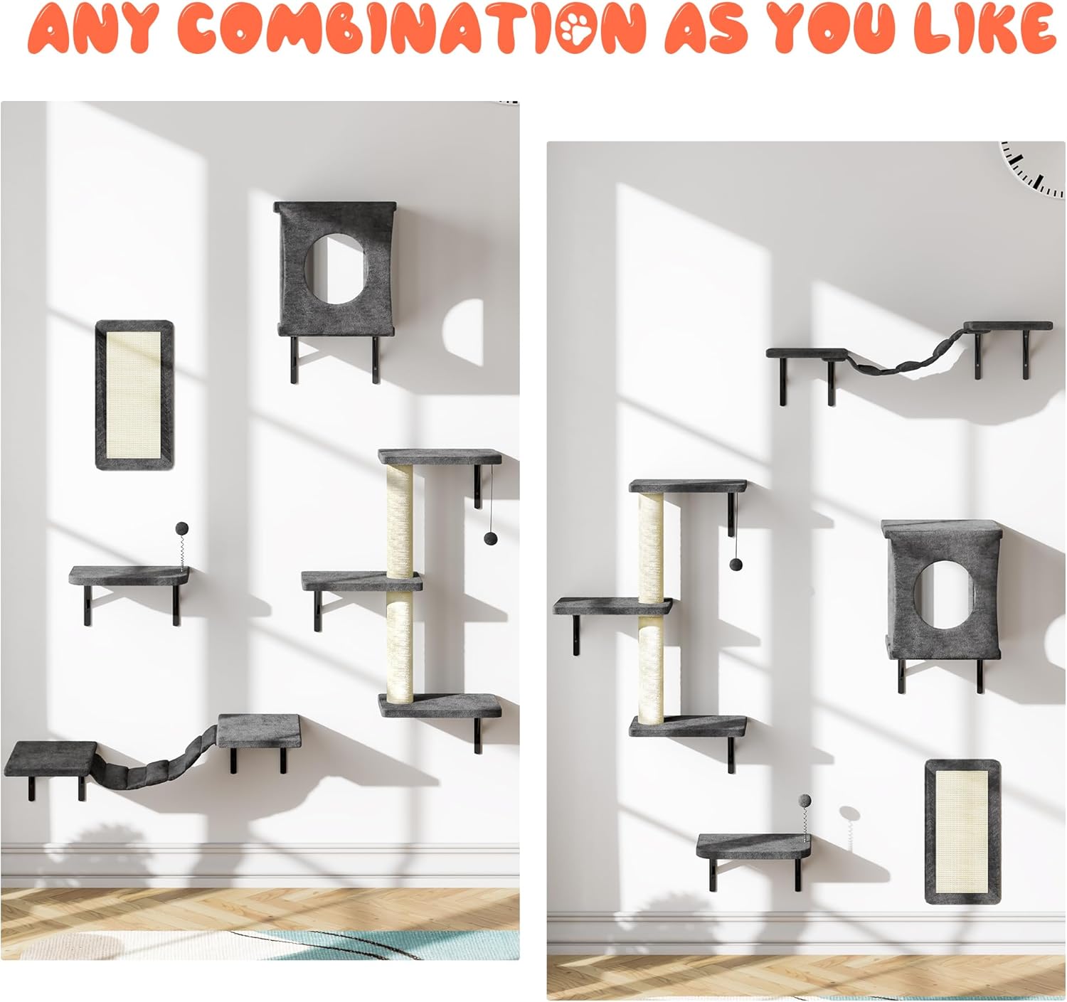 - SIMPLE DIY-ABLE INSTALLATION - The cat shelves with a wide variety of accessories, you can freely combine and install them according to the wall conditions and your cat's specific needs. Not only do you have less installation trouble, but also allow your cat to have a suitable cat furniture.