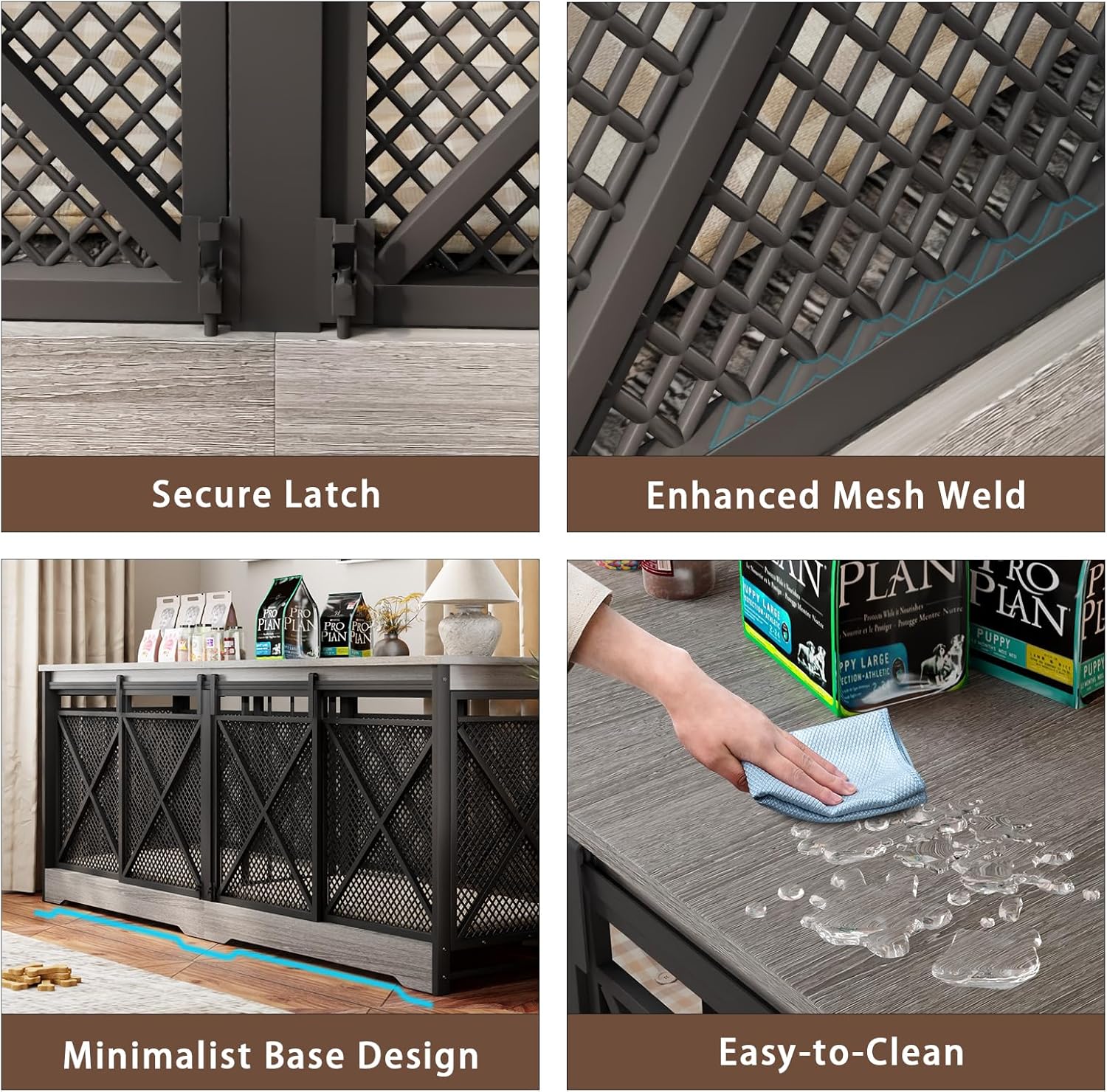 - 🐾【Thoughtful Details】This decorative dog kennel furniture comes with safety latches to ensure your dog won't escape easily. The raise bottom of the kennel helps to improve air circulation and reduce moisture at the bottom, creating a comfortable and dry living environment for your dog.