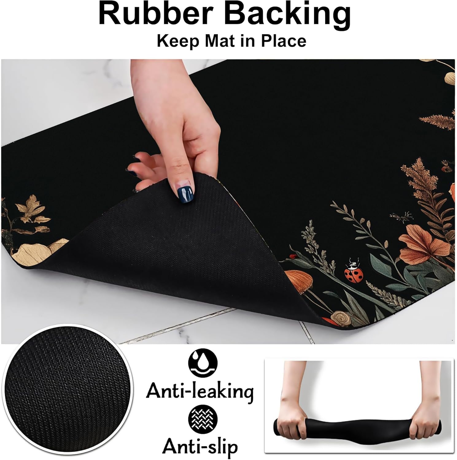 Vintage Mushroom Flower Pet Cat Dog Food Mat-Absorbent Quick Dry Feeding Placemat for Water and Food, No Stains Rubber Base Mat for Indoor Use, Pet Accessories 12"x20"