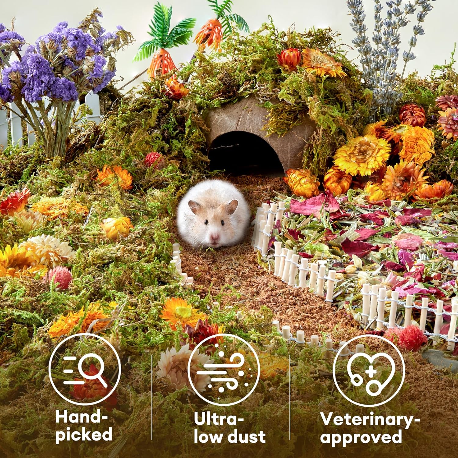 - 100% Natural Sun-Dried Flowers &hamster Bedding:Hand-harvested at peak freshness, gently air-dried using traditional methods, completely free from additives, preservatives and artificial colors, sustainably sourced and vegan-friendly.