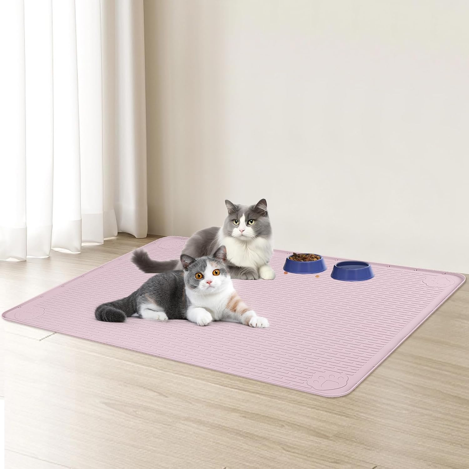- Non-slip: This silicone pet mat fits well on the floor, not easily shifted. And it stuck on the floor firmly no matter how your cats are moving on the mat