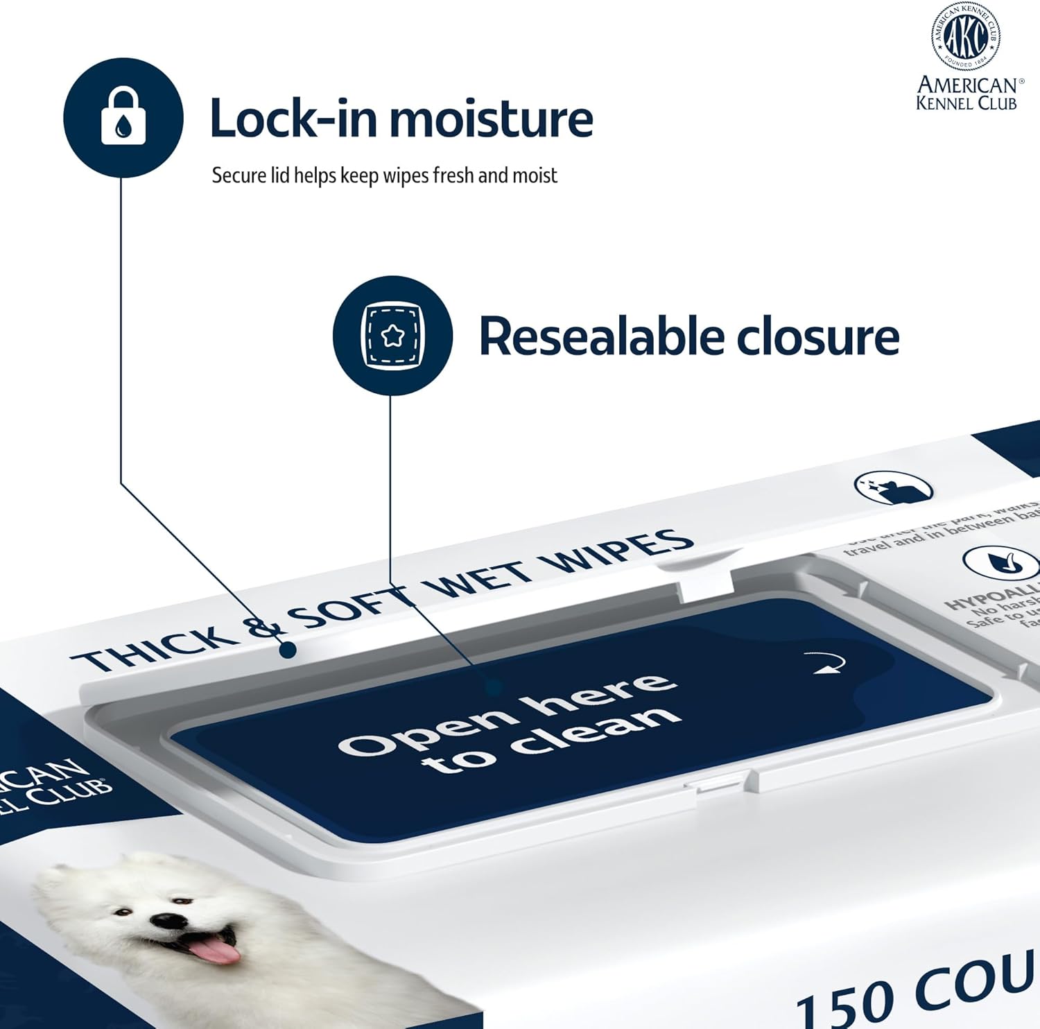 AKC Pet Wipes for Dogs & Cats – Hypoallergenic, Alcohol-Free Wipes for Paws, Face, Ears & Coat – Thick, Gentle Cleaning with Natural Aloe – Available in Lavender, Fresh & Oatmeal Scents