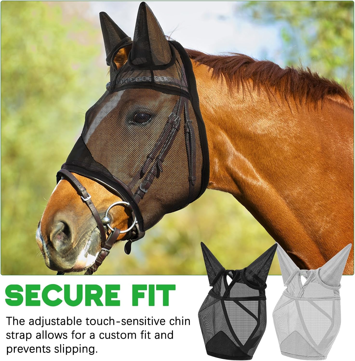 - Fit for Every Horse: finding the fit is a breeze with our adjustable size feature; This fly mask with ears for horses adapts seamlessly, offering optimal protection and comfort, ensuring a secure fit no matter the day's activity