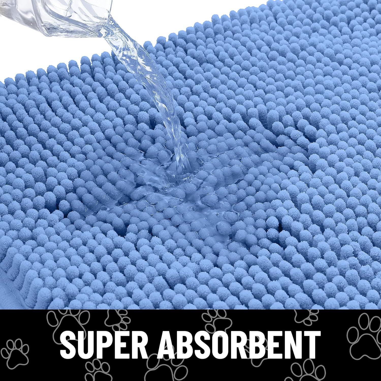 Smiry Dog Door Mat for Muddy Paws, Absorbent Dirt Trapper Non Slip Quick Dry Washable Chenille Mat for Mud Dogs, Entry Rug for Indoor and Outdoor (48x30 Inches, Cornflower Blue)