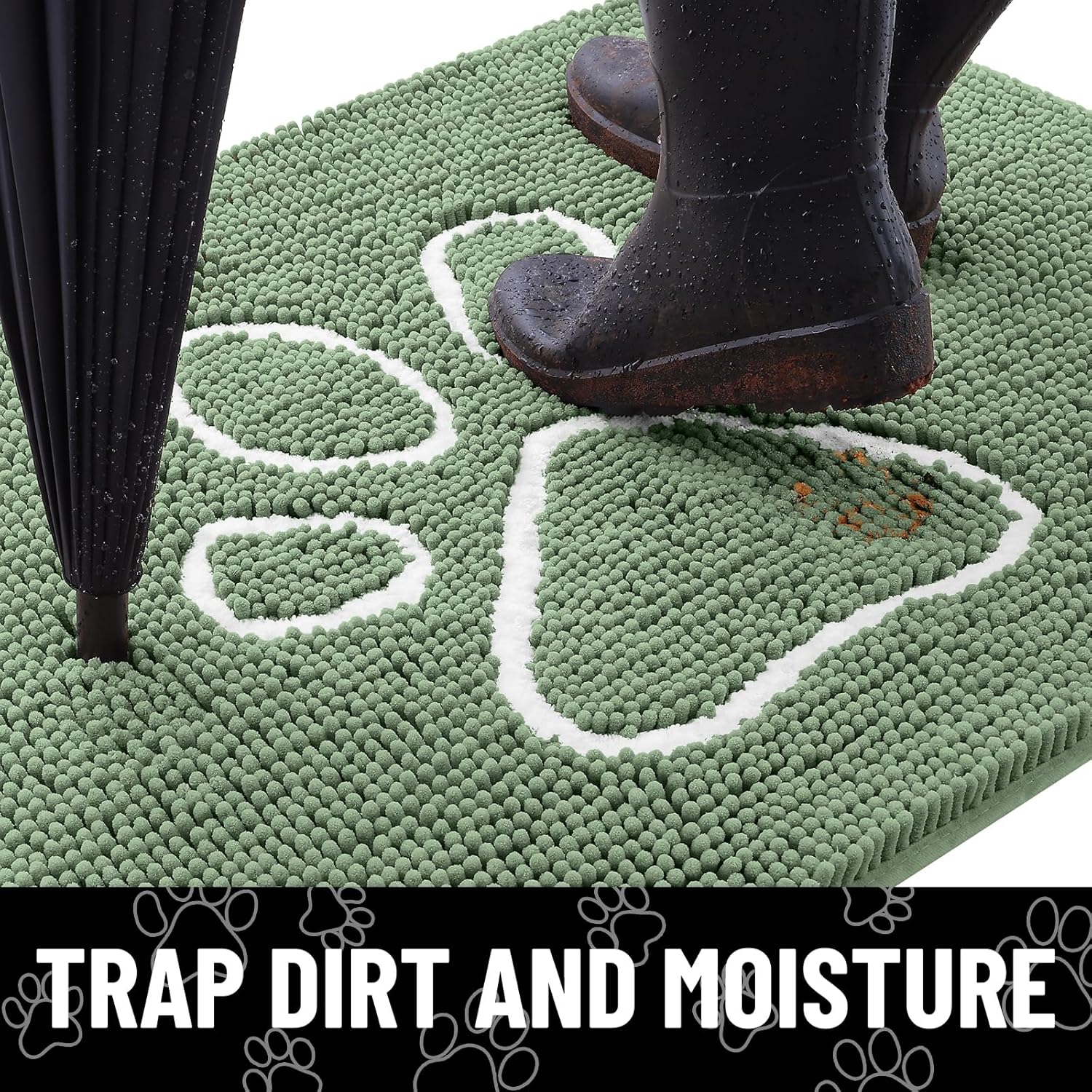 Smiry Dog Door Mat for Muddy Paws, Absorbent Dirt Trapper Non Slip Quick Dry Washable Chenille Mat for Mud Dogs, Entry Rug for Indoor and Outdoor (24x16 Inches, Olive Green and White)