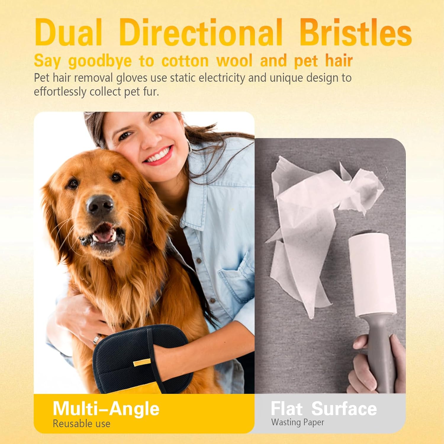 - 【Gloves-On Convenience & Reusable Savings - Your Ultimate Pet Hair Remover】 Ditch disposable rollers! This innovative pet hair remover gloves slips on like a second skin, offering unmatched flexibility and control. It's a washable and reusable pet hair removal gloves, saving you money and reducing waste. Enjoy a sustainable, cost-effective pet hair remover solution that works brilliantly every time.