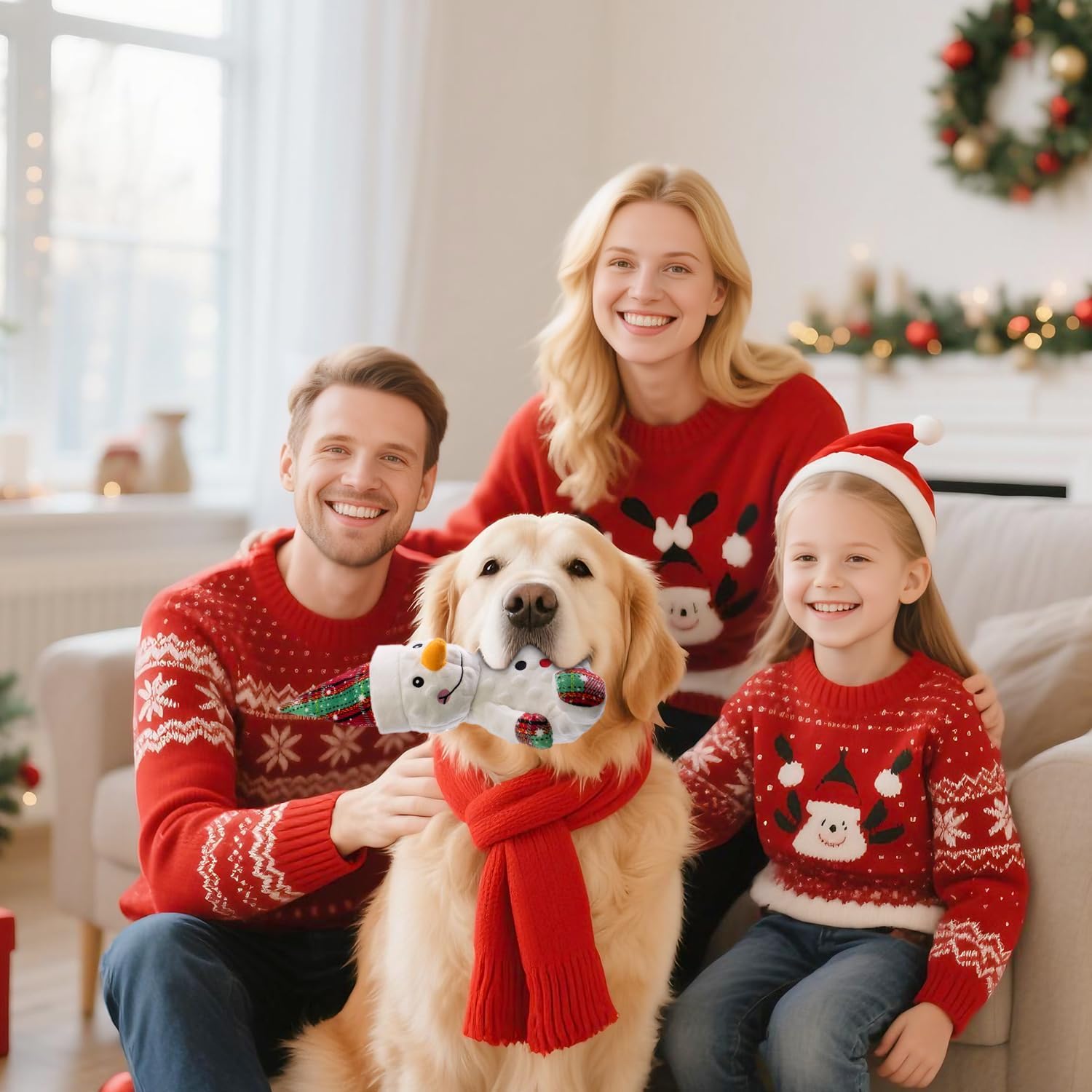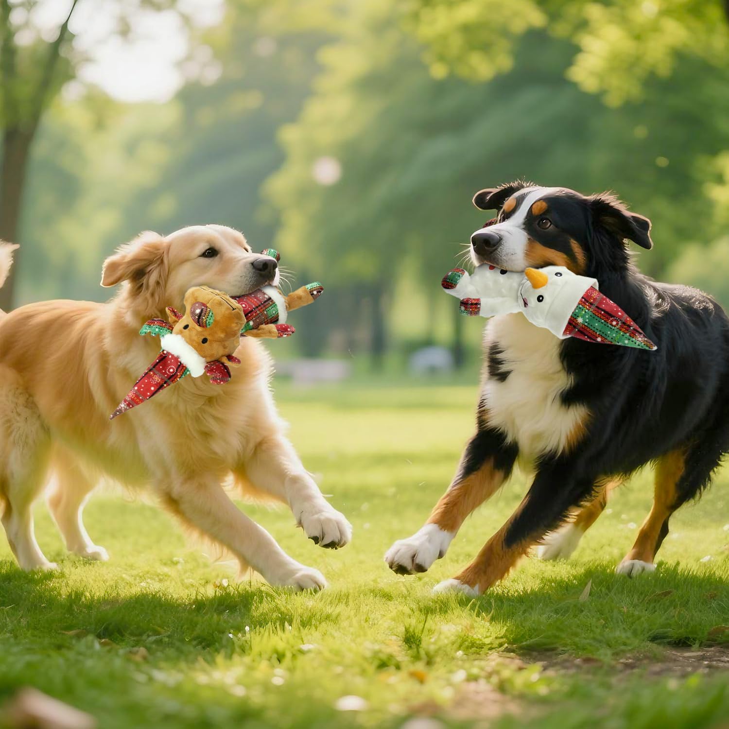 - Plush Dog Toys for Aggressive Chewers - Squeaky & DurableοΌThe double-layer plush toy design can make the toy more bite resistant, last longer, and attract the dog's attention with its squeaking sound, bringing more fun to Christmas