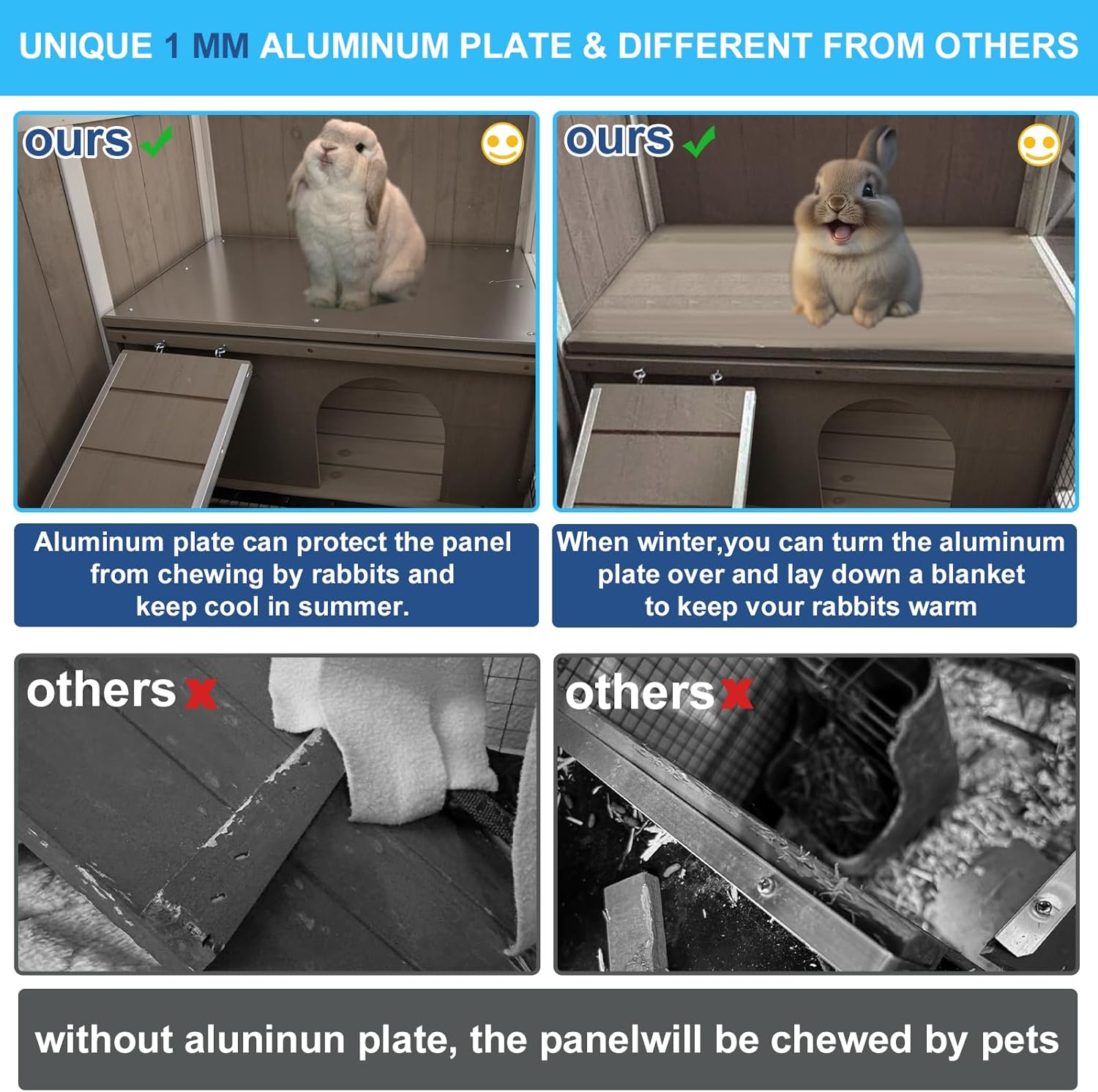 - 【Reversible Cooling Panel】The bunny house features a reversible cooling panel to ensure your pets' comfort during hot weather. It can be flipped to provide extra insulation during colder months. The secure, lockable door on these guinea pig and bunny cages ensures your pets' safety at all times. Easily accessible for all your pet housing needs.