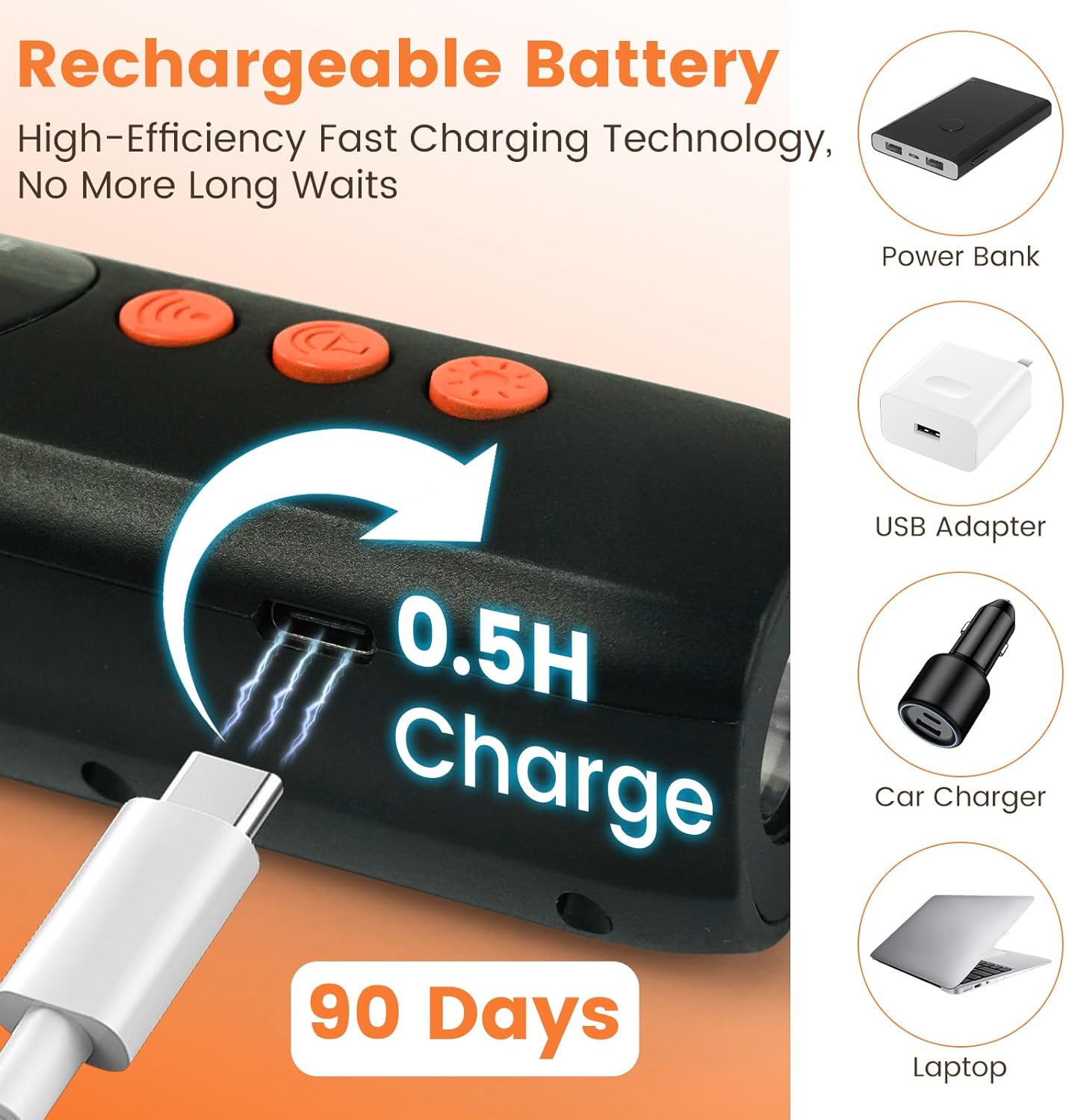 - 5-in-1 Training Tool with LED Flashlight: Combining Ultrasonic, Sound, and Flashlight modes with two ultrasonic frequencies (25kHz fixed & 25–30kHz variable), this bark deterrent is more than just a training device. The built-in LED flashlight is perfect for late-night walks, jogging, or cycling, while the flash mode deters aggressive or unfamiliar dogs, keeping both you and your dog safe outdoors.