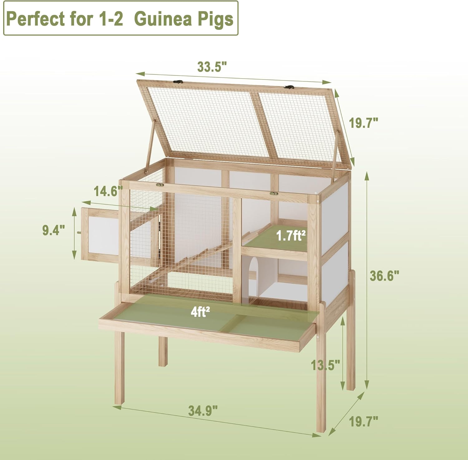 - 2 In 1: This large guinea pig cage features clearly defined functional areas: the first floor includes a bedroom, dining area, and bathroom, while the second floor offers a spacious entertainment area. The 2 floors are connected by a fun ramp, which not only increases exercise for the small animals but also helps maintain their mental health