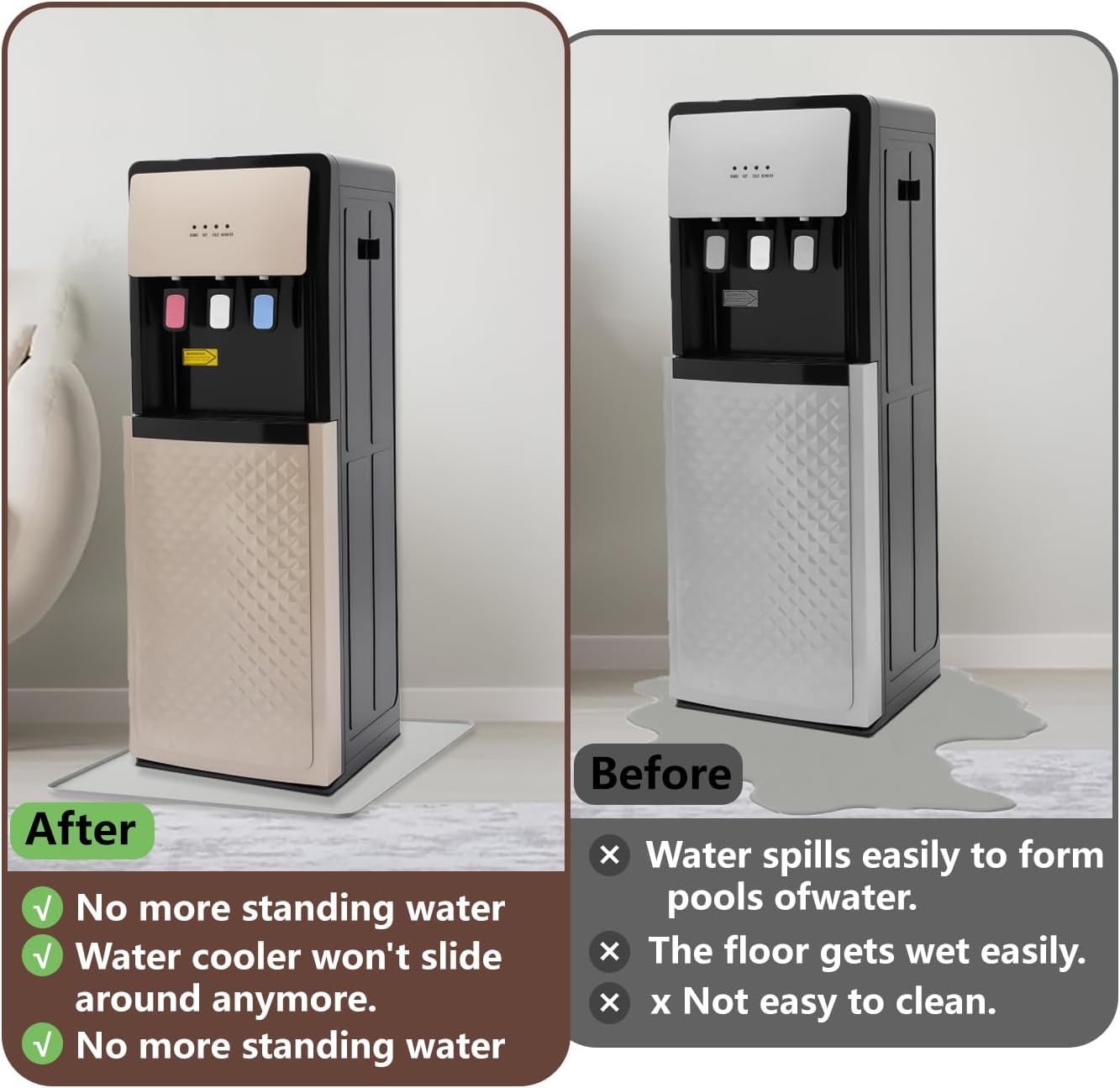 - 【Perfect floor protection】The water dispenser mat is made of high-quality waterproof silicone, the size is 24 inches x 16 inchesx 0.8-inch raised design can 100% prevent water or liquid from overflowing from the water dispenser, Helps protect your floors from water leaks or other stains .