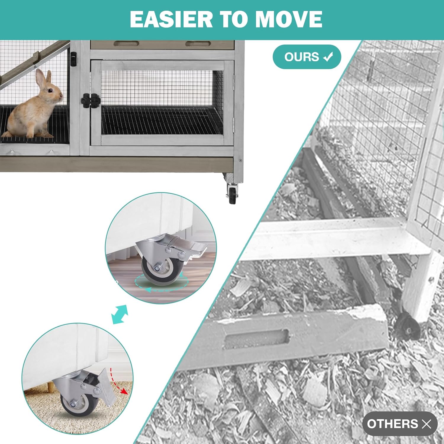 - Durable & Safe Shelter: Crafted with natural weather-resistant cedar wood, this 2-story rabbit hutch ensures long-lasting durability for your pets. The ventilation wire mesh on the sides promotes airflow, keeping your bunnies healthy and comfortable indoors