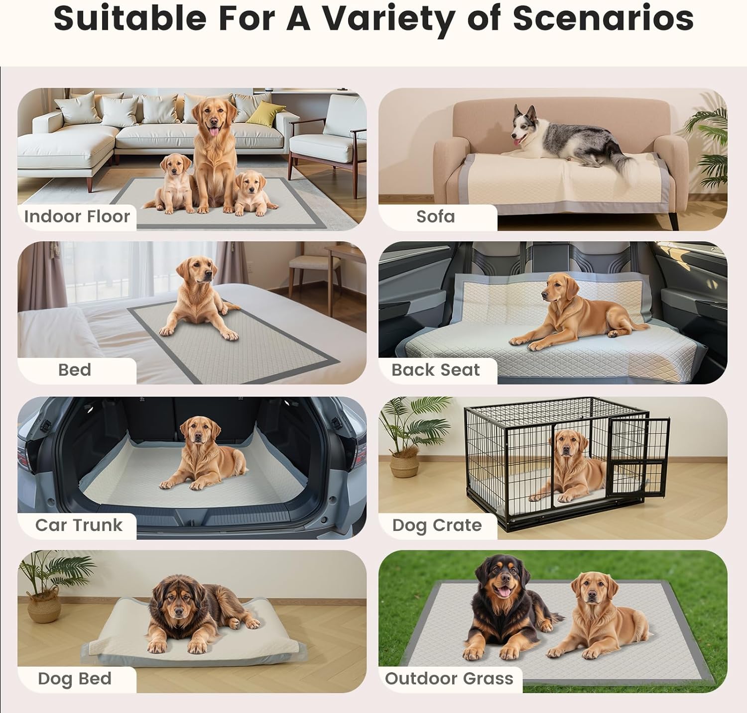 - Multiple Scenarios, Essential for Pet Owners: This xl puppy pads large is highly versatile. It can serve as training pads for dogs, pee pads for cats, senior dog potty pads, or postpartum care pad. Ideal for dog crates, cars, puppy trays, cat carriers, playpens, and covering spills from water/food bowls. Perfect for travel, outdoor use, hotels, public spaces, and daily walks. This pet pee pads meet nearly all pet needsβsuitable for large puppies, dogs, cats, senior pets, kittens, rabbits, ducks, and more.