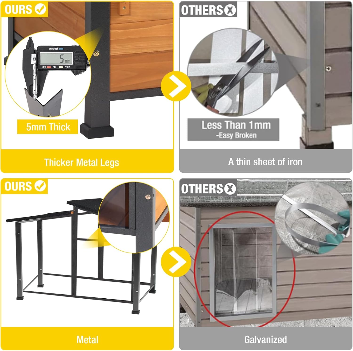 - 【All-Weather Protection】Equipped with a detachable PVC door curtain and 4 elevated floor pads, this dog house offers complete protection against rain, wind, and moisture from the ground