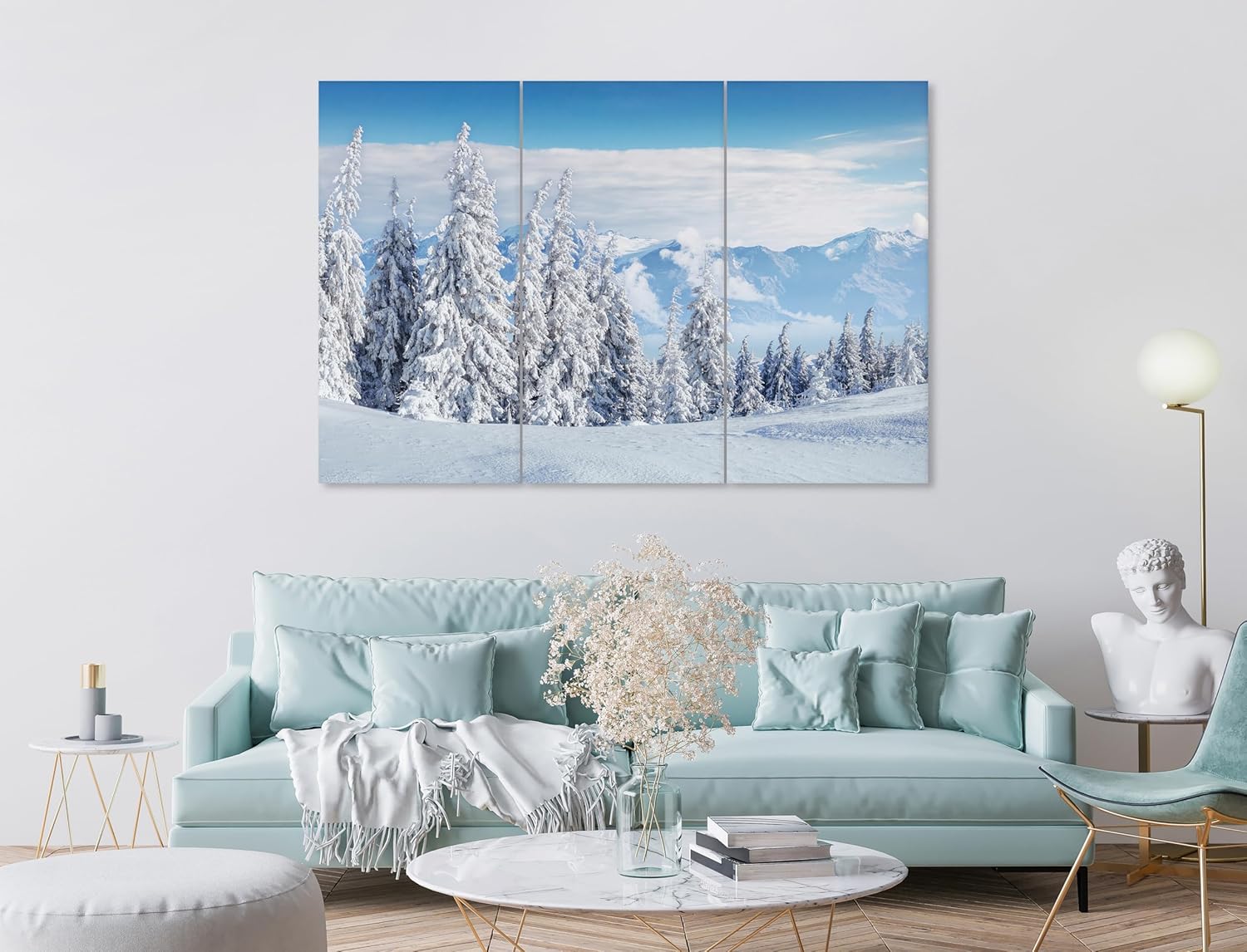 Nature Wall Art Prints - Ocean Forest Mountain Lake Canvas Landscapes - Small to Extra Large Living Room Bedroom Kitchen Bathroom Décor (Snow Covered Trees on Mountain, 31L" x 47W" - 3 Panels)