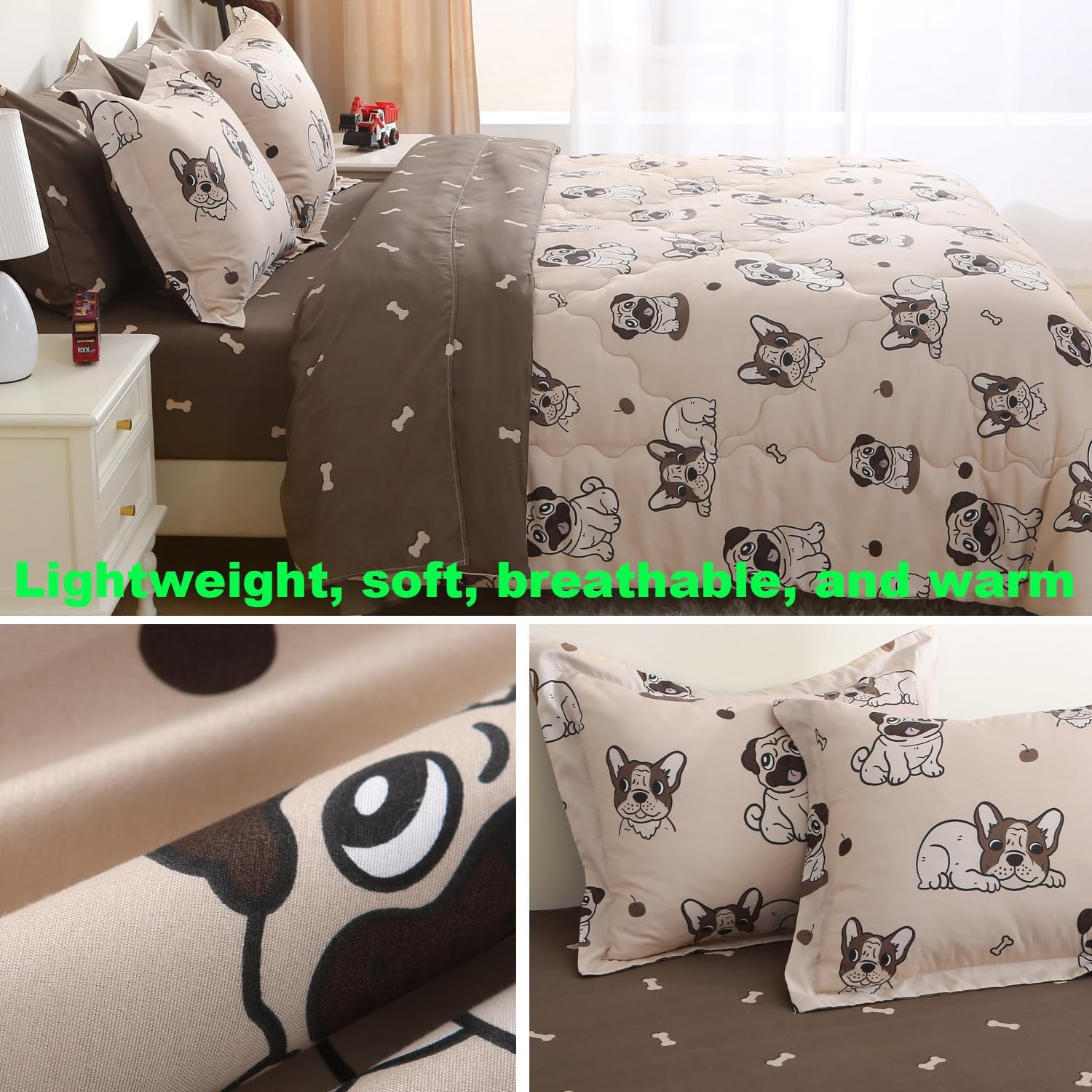 Kids Comforter Set 7 Piece Bedding Cute Dog Cartoon Animal Bed Microfiber Comforter Full Size All Season (1 Comforter, 1 Flat Sheet, 1 Fitted Sheet, 4 Pillowcase)