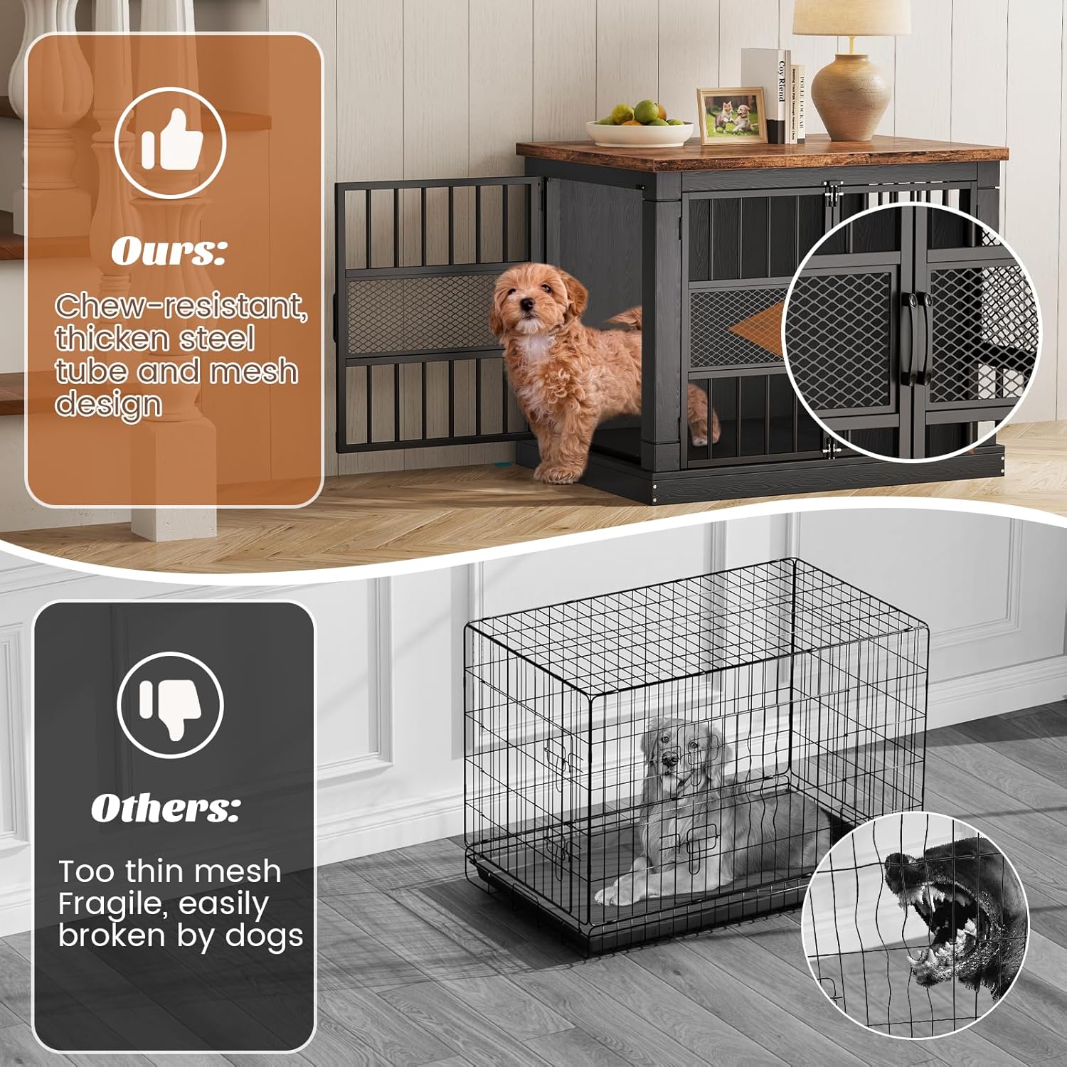 - Durable & Easy to Clean: Crafted with a sturdy wooden surface and an easy-to-clean interior bottom, this XL dog crate ensures durability while making maintenance hassle-freeβno more worries about pet messes