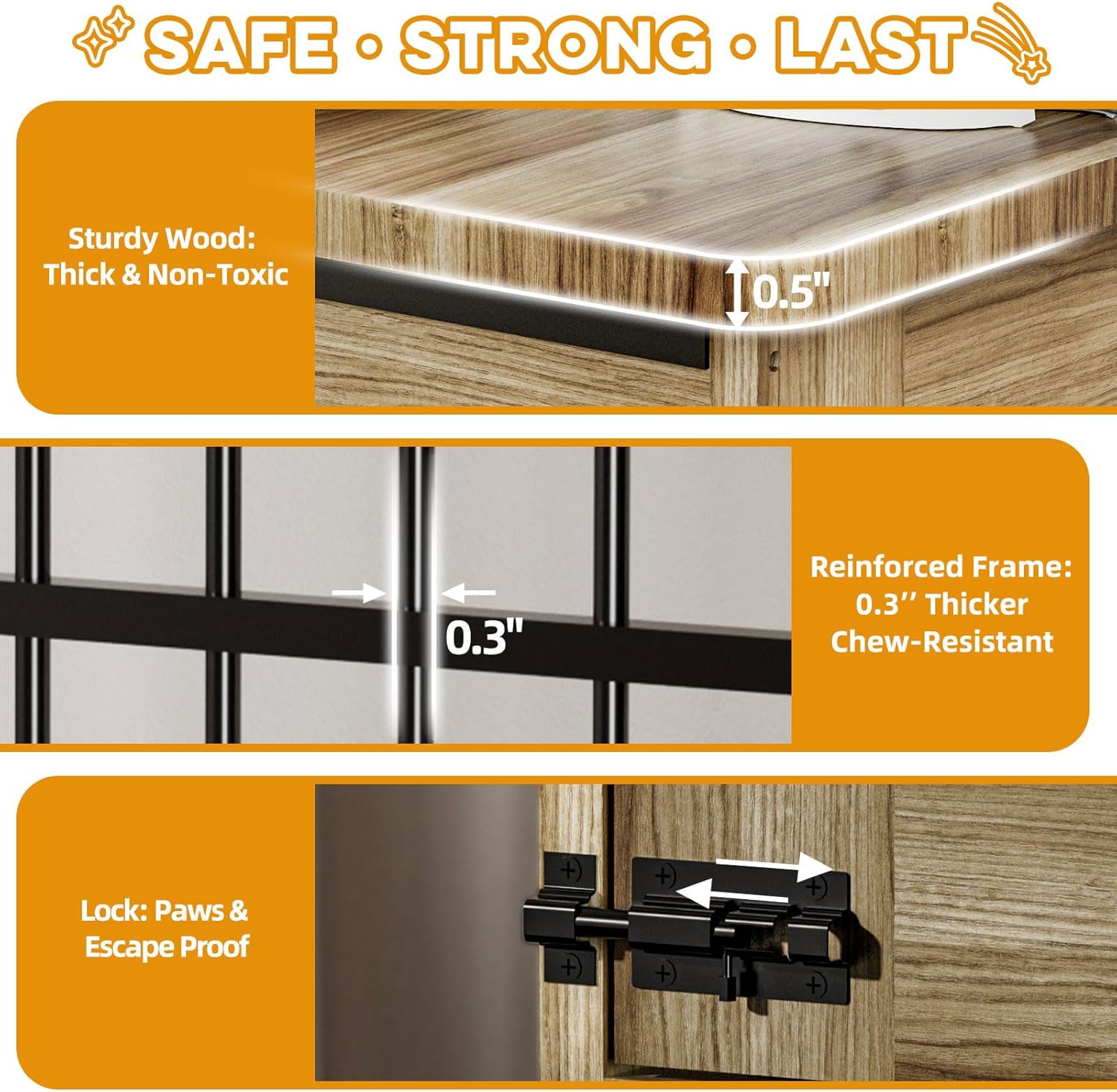 • Space-Saving Double Door: Features an innovative "lift-and-push" front door that opens upward, saving space and preventing accidents. Double door design offers easy access for cleaning, placing beds, or helping your pet in and out
