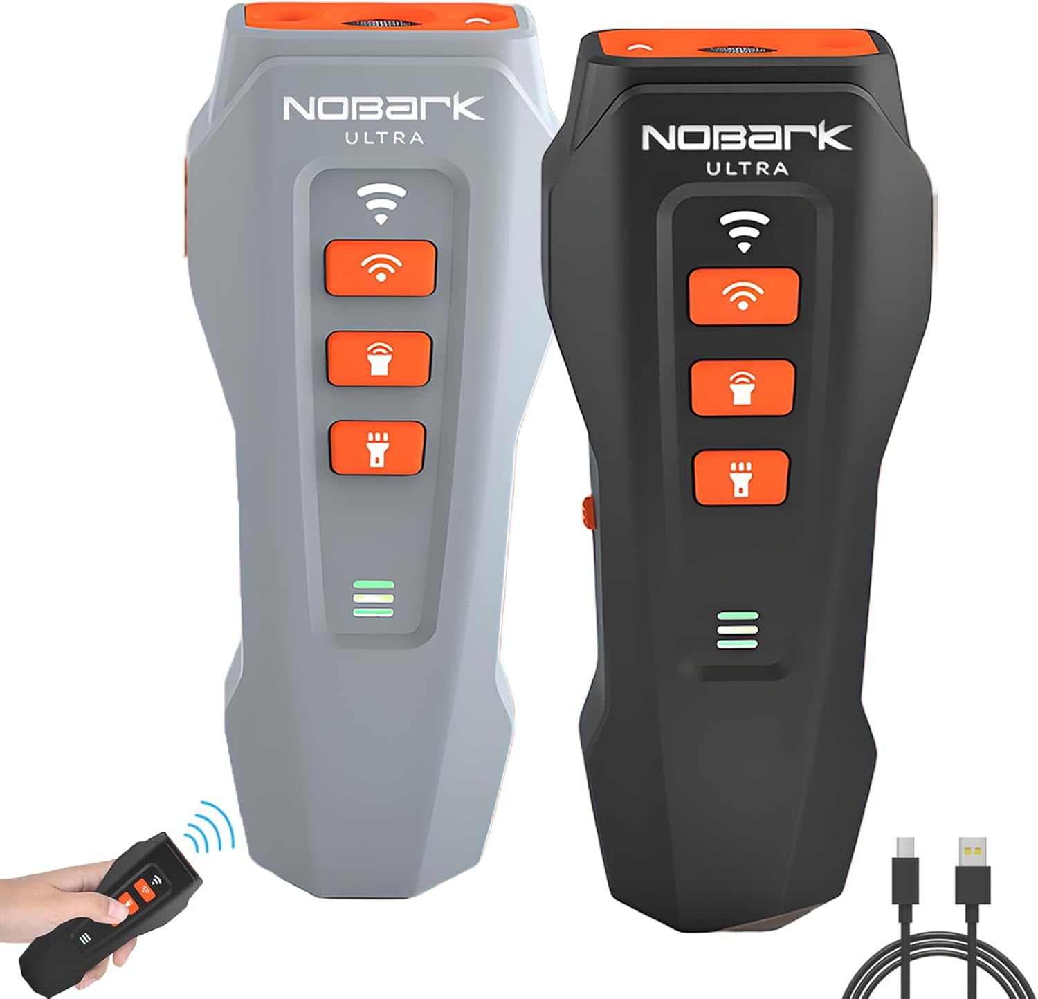- [Humane and Safe Sonic Technology]: No Bark Ultra provides a gentle yet effective training solution. It uses safe ultrasonic sound waves to capture your dog's attention and discourage unwanted behaviors without any pain, shock, or stressβideal for all breeds and sizes.